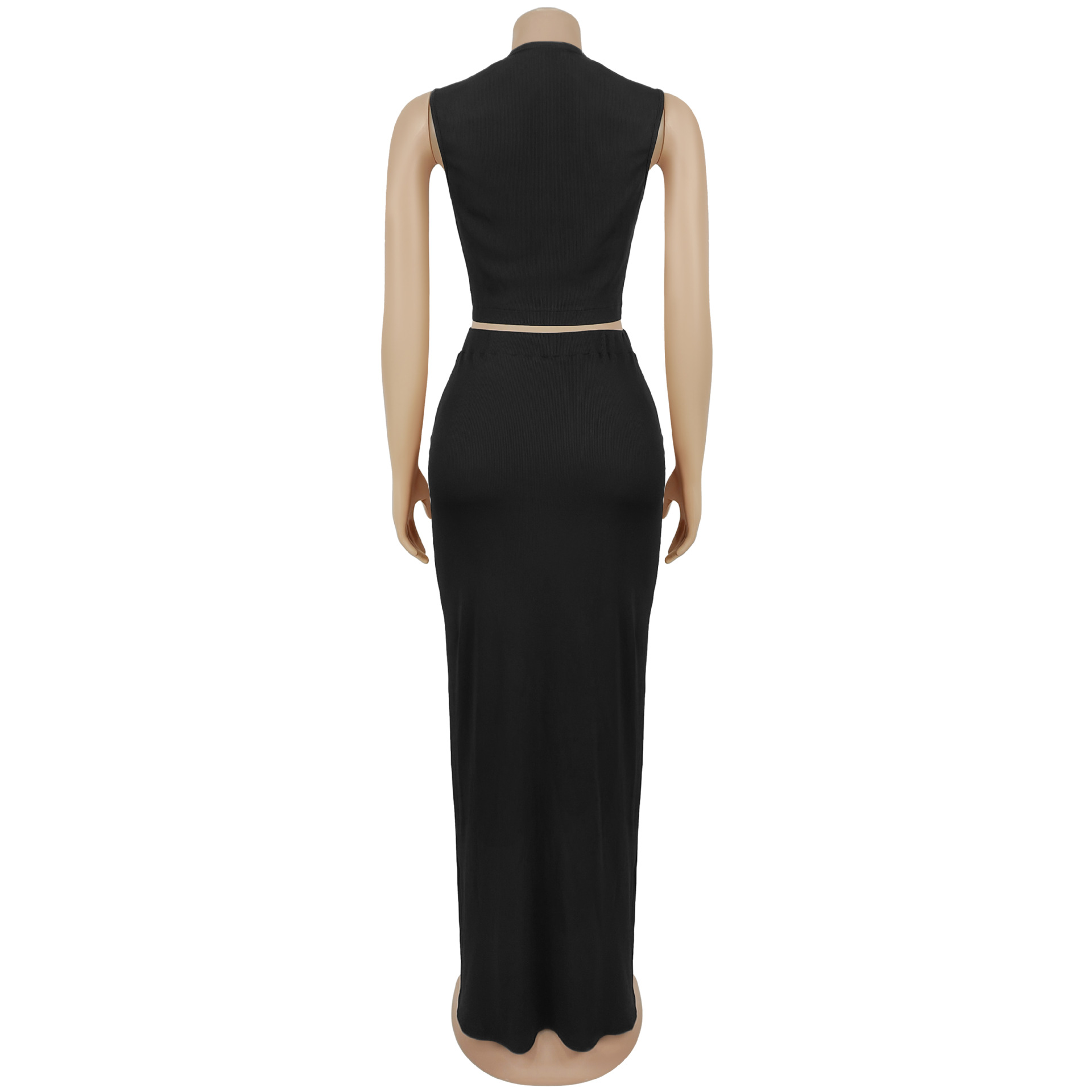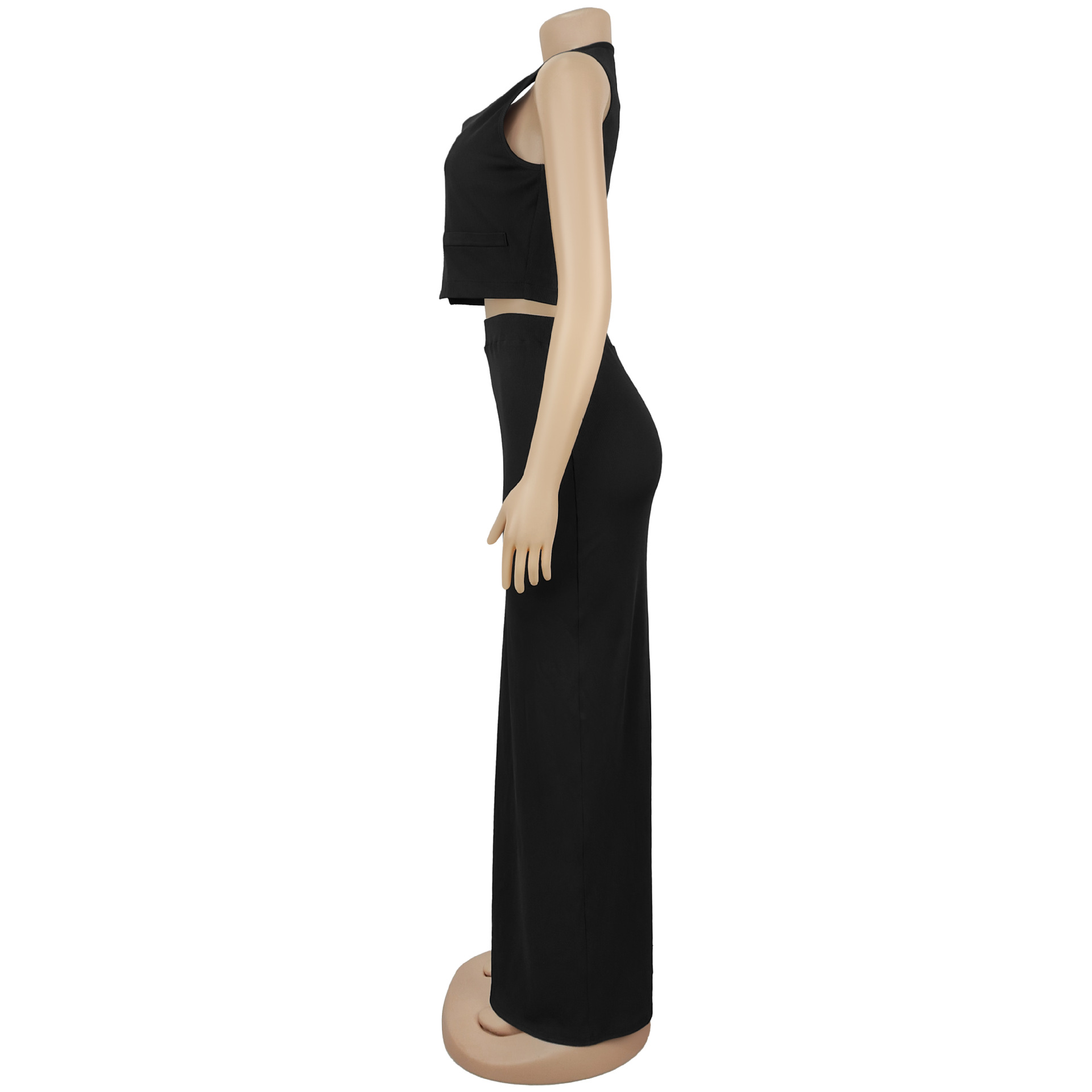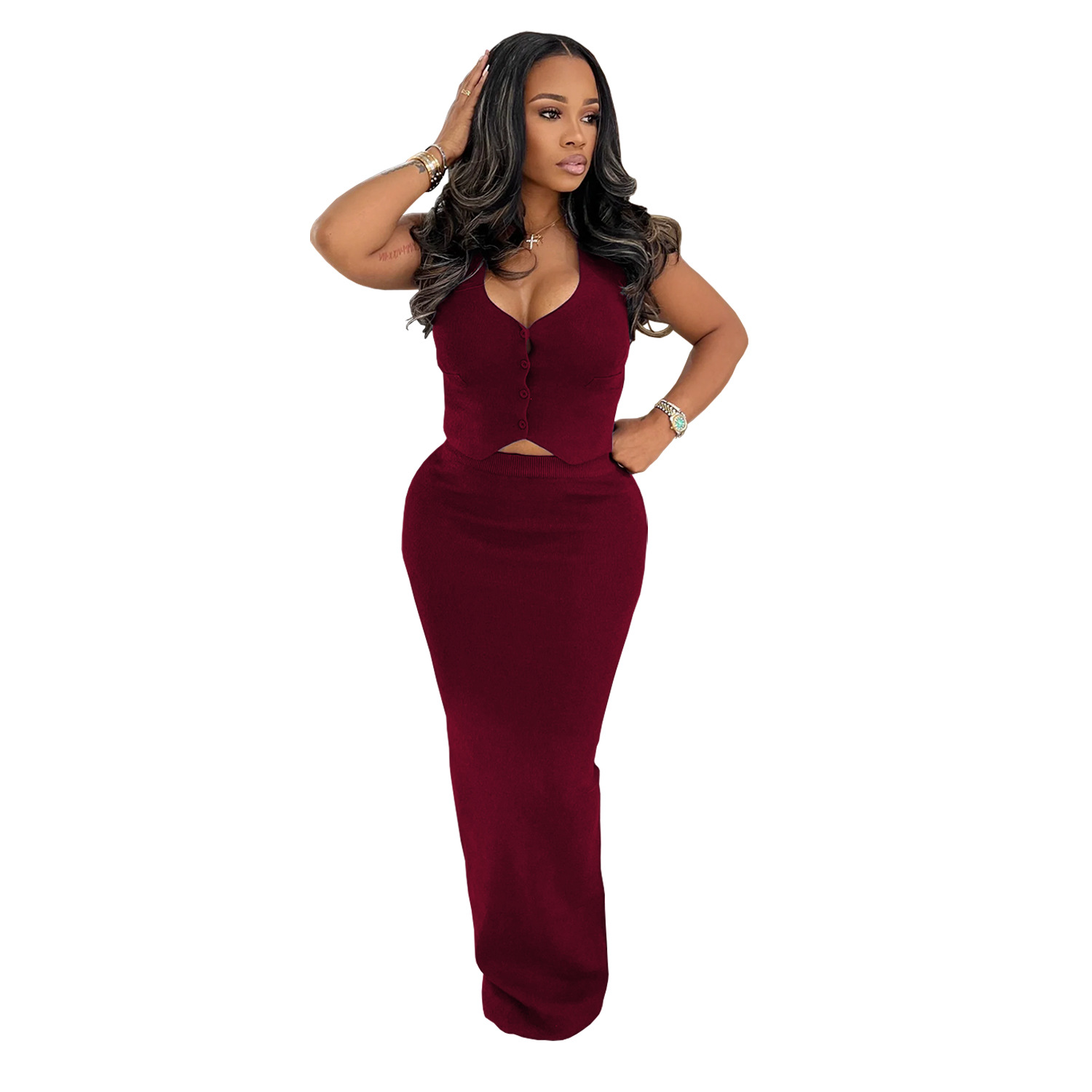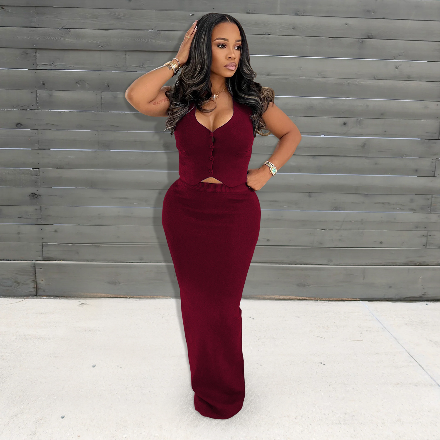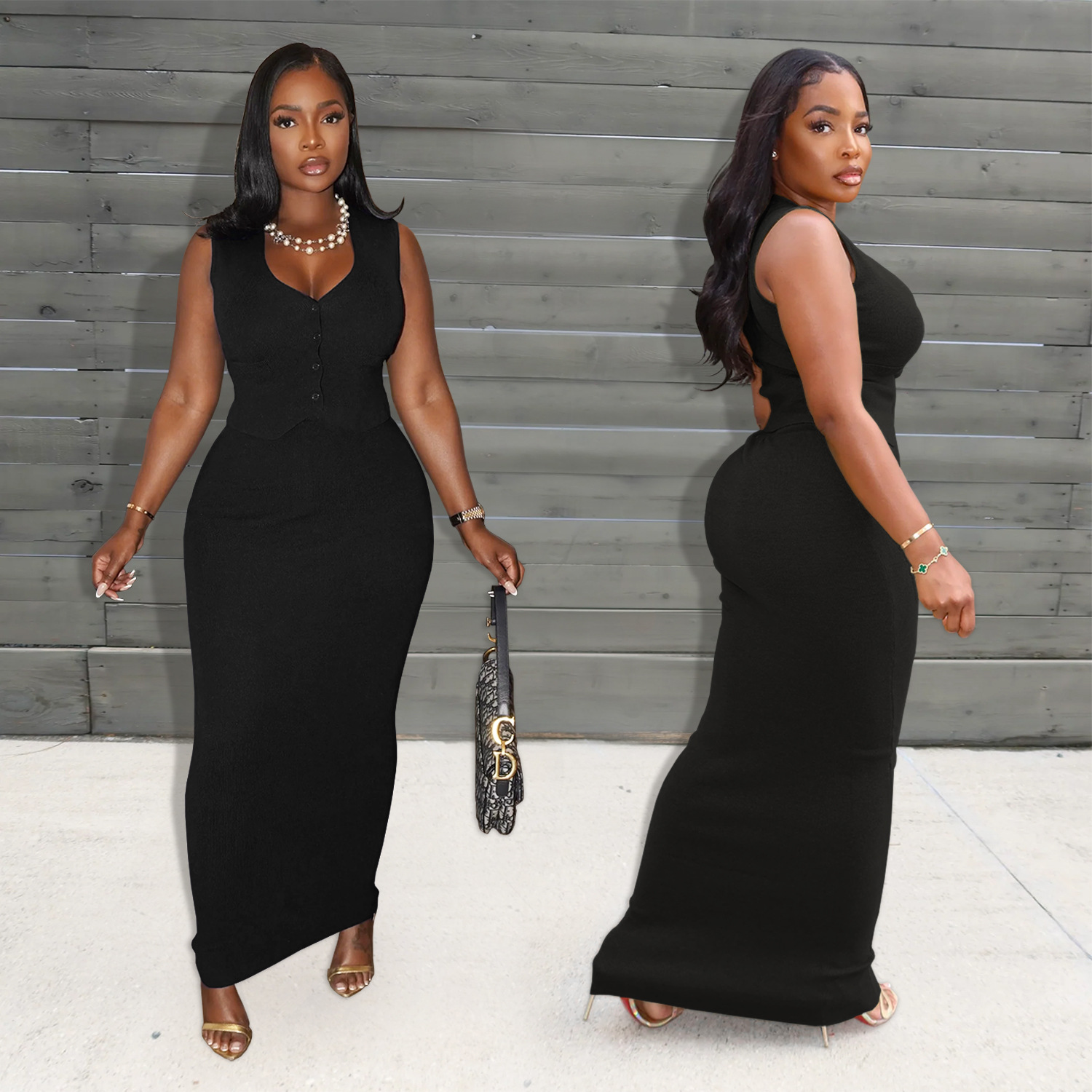 C7576跨境速卖通亚马逊欧美时尚女装休闲纯色纽扣上衣长裙两件套
