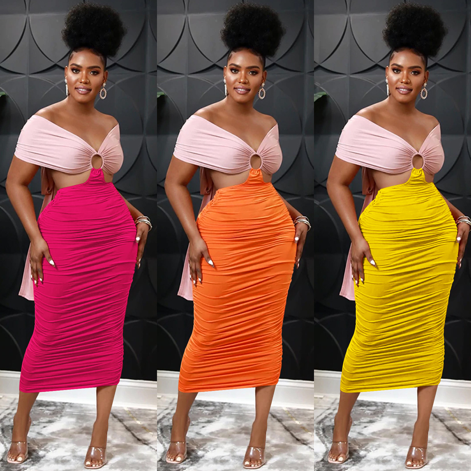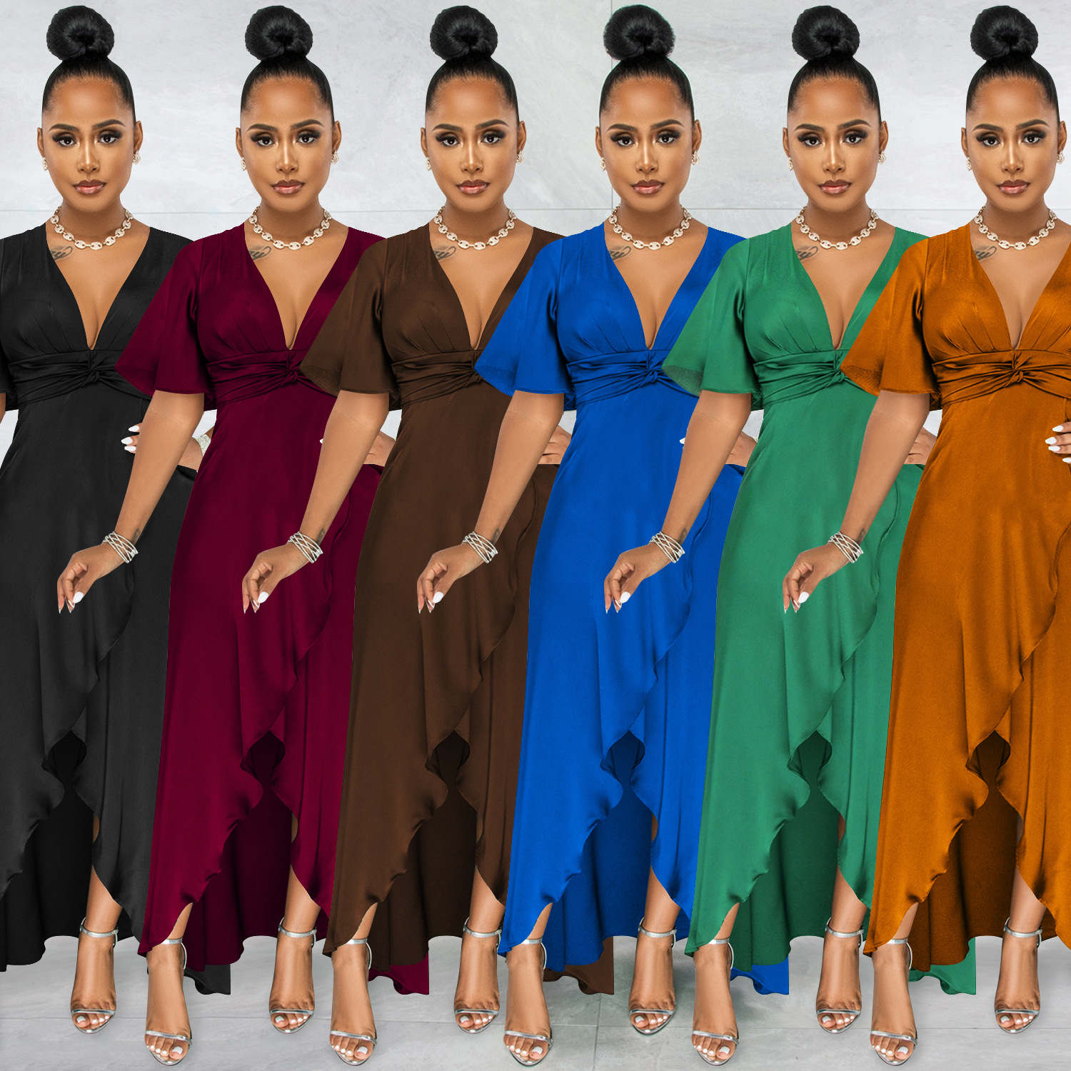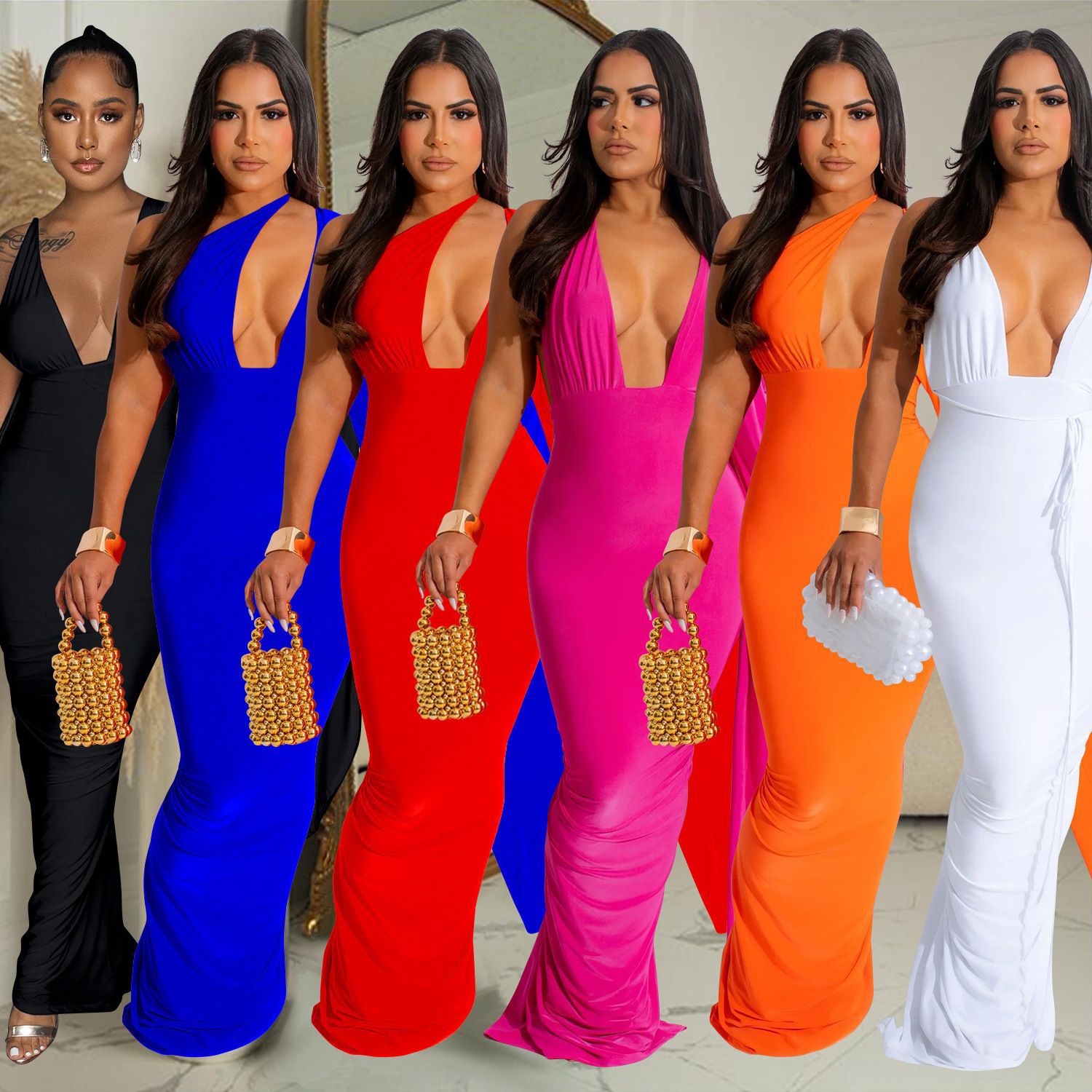 C7157国境を越えた速売アマゾン欧米ファッション女装純色オープンドレス低胸ワンピース新