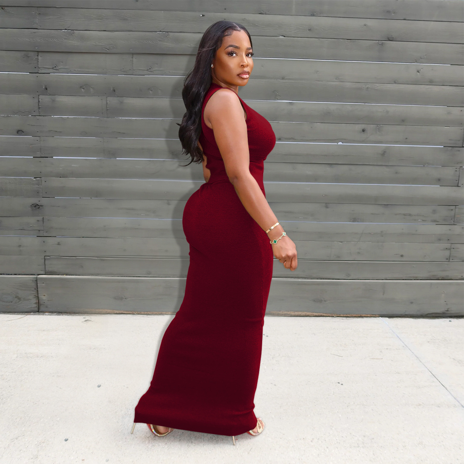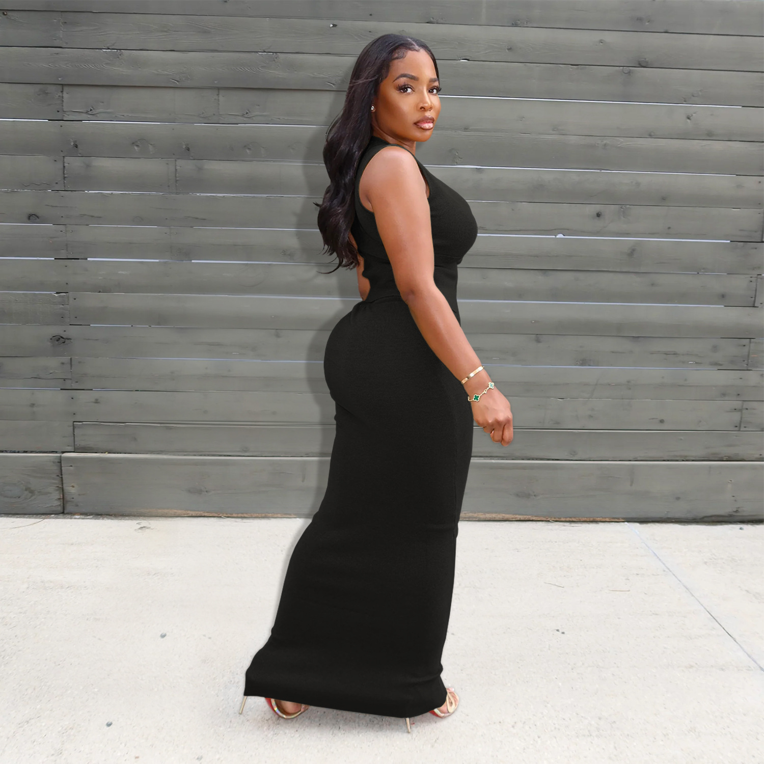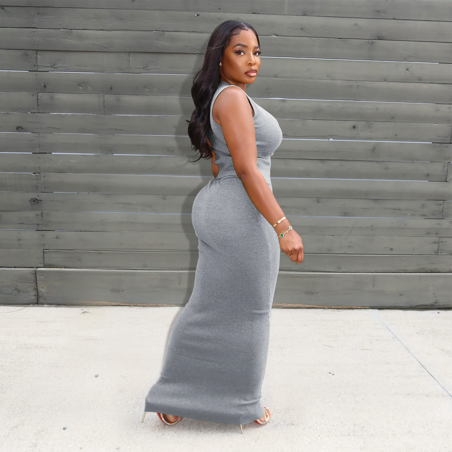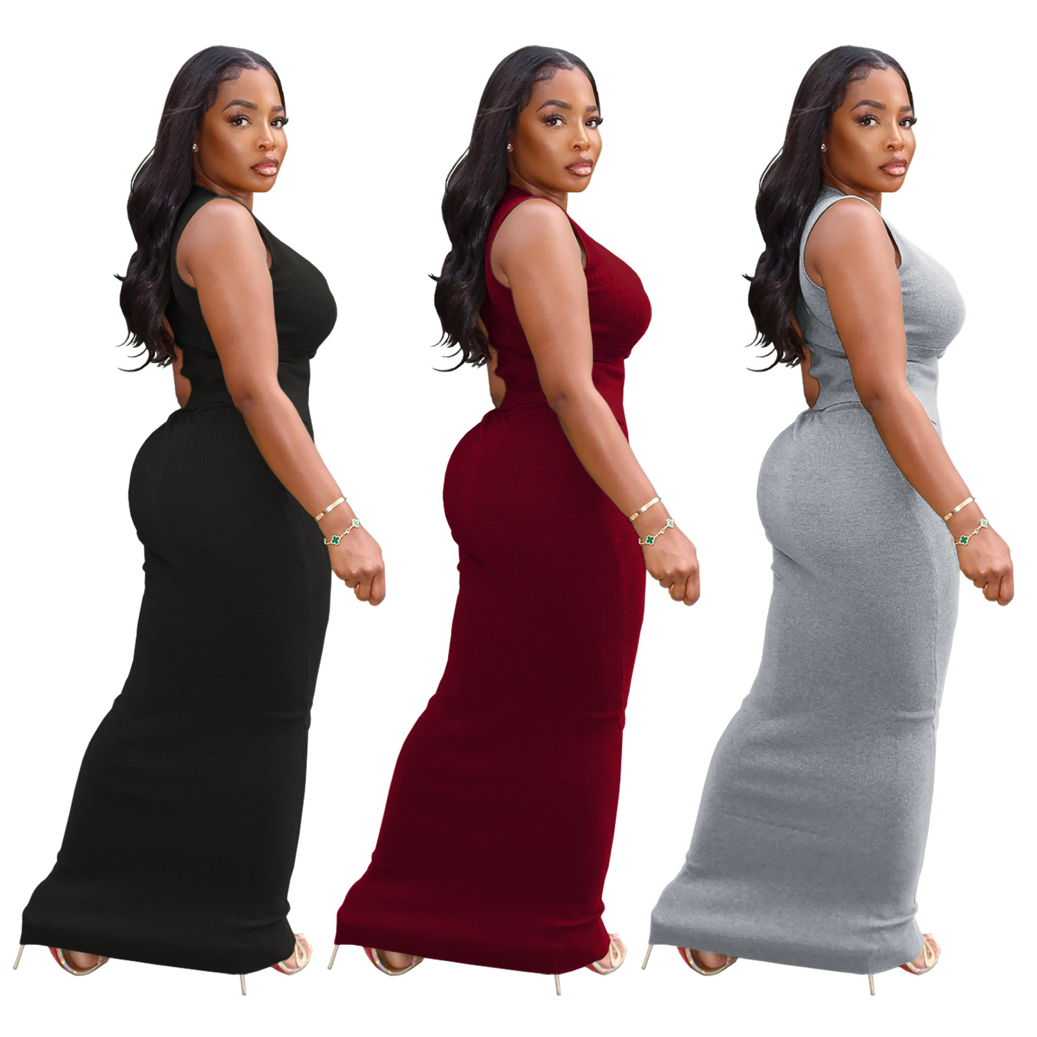 C6365国境を越えた速売アマゾン欧米ファッション女装純色ホットドリルのノースリーブロングワンピース