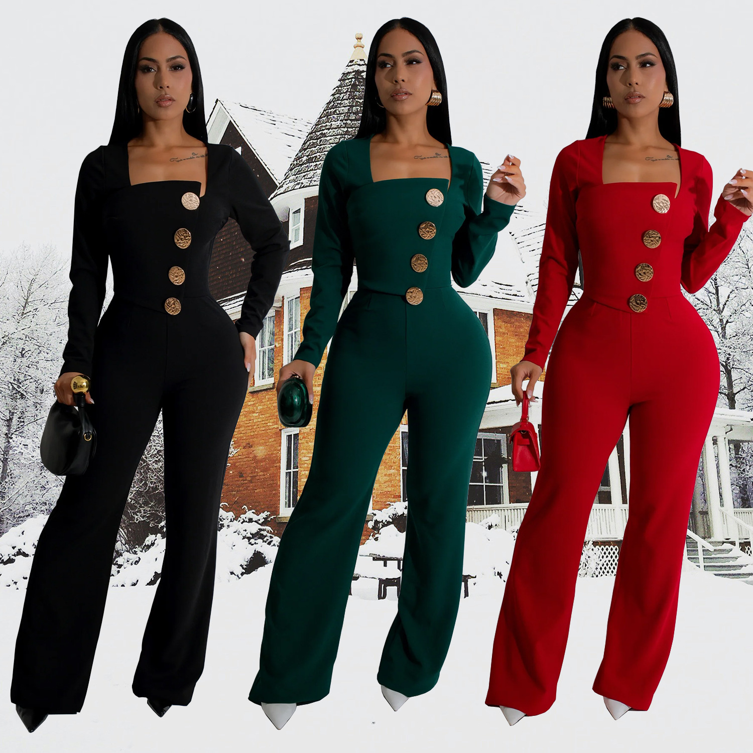 C7201クロスボーダー速売アマゾン欧米ファッション婦人服長袖包腕長ズボン修身純色連体ズボン