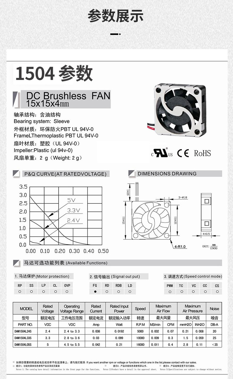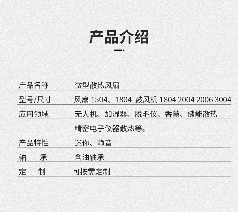 产品规格 1504散热风扇,1804散热风扇,1804鼓风机,2004鼓风机,2006鼓风机,3004鼓风机