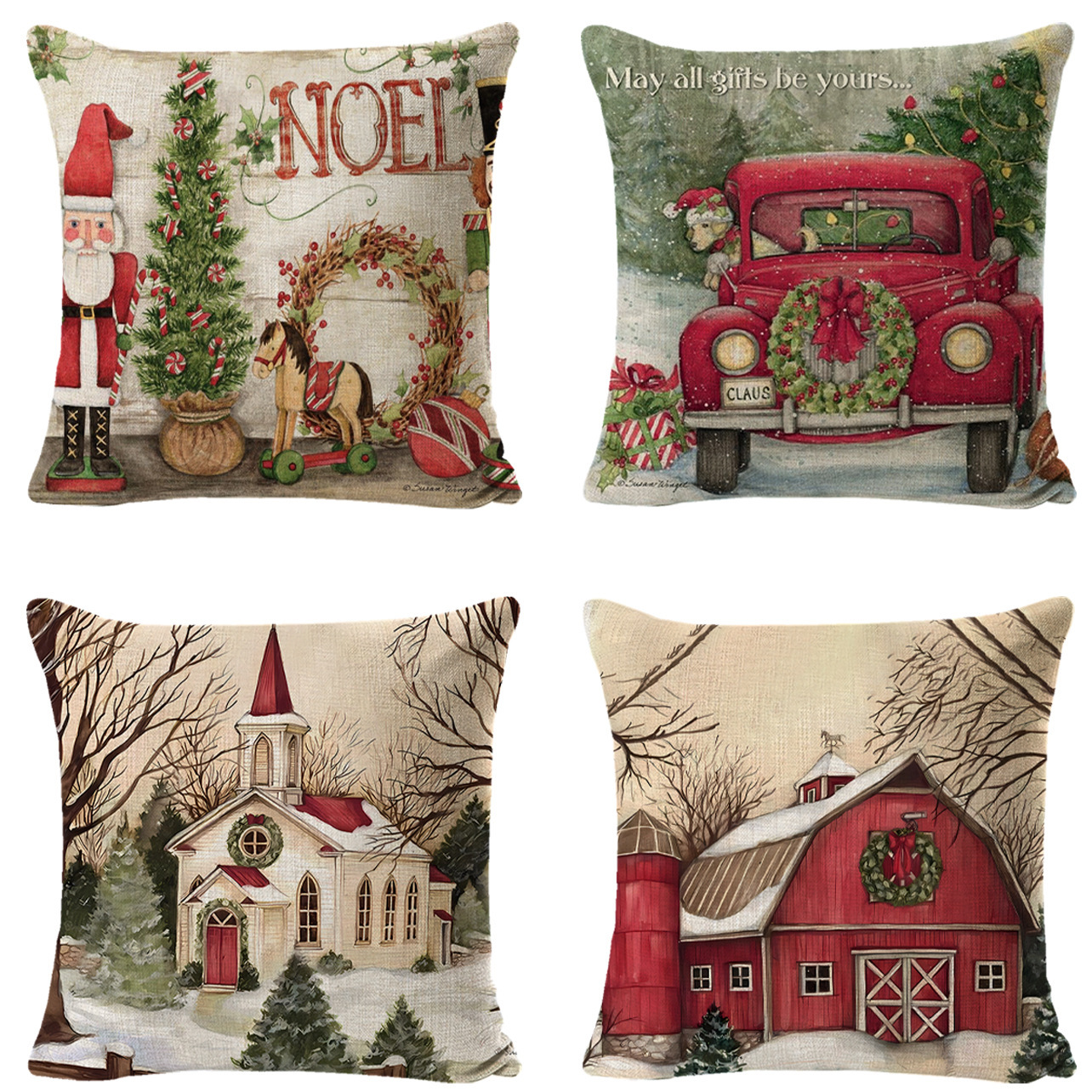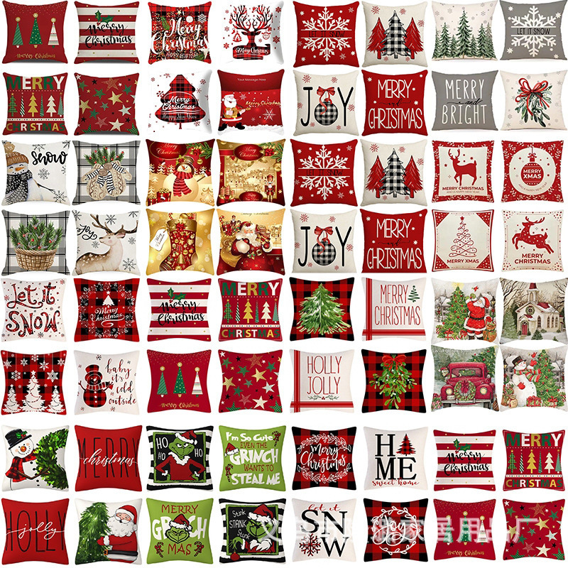 跨境圣诞系列抱枕套 亚麻印花圣诞节日氛围装饰客厅沙发靠枕批发