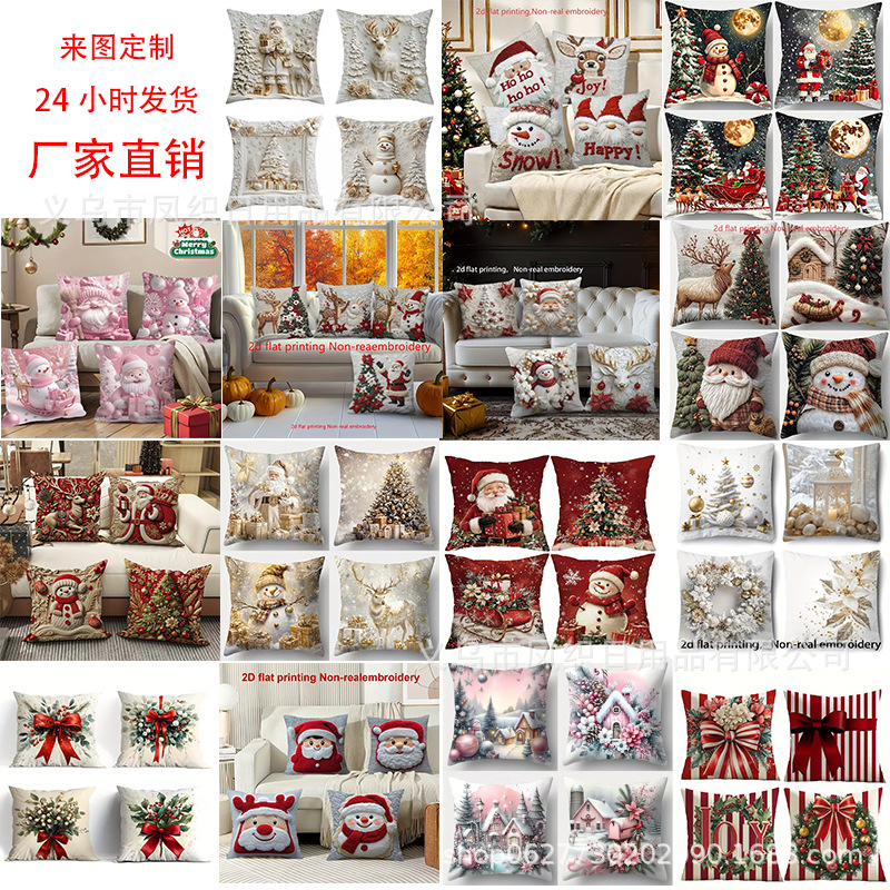 アマゾンクロスボーダーtemu新型クリスマス抱き枕クッション家庭装飾短毛亜麻プリント抱き枕カバー
