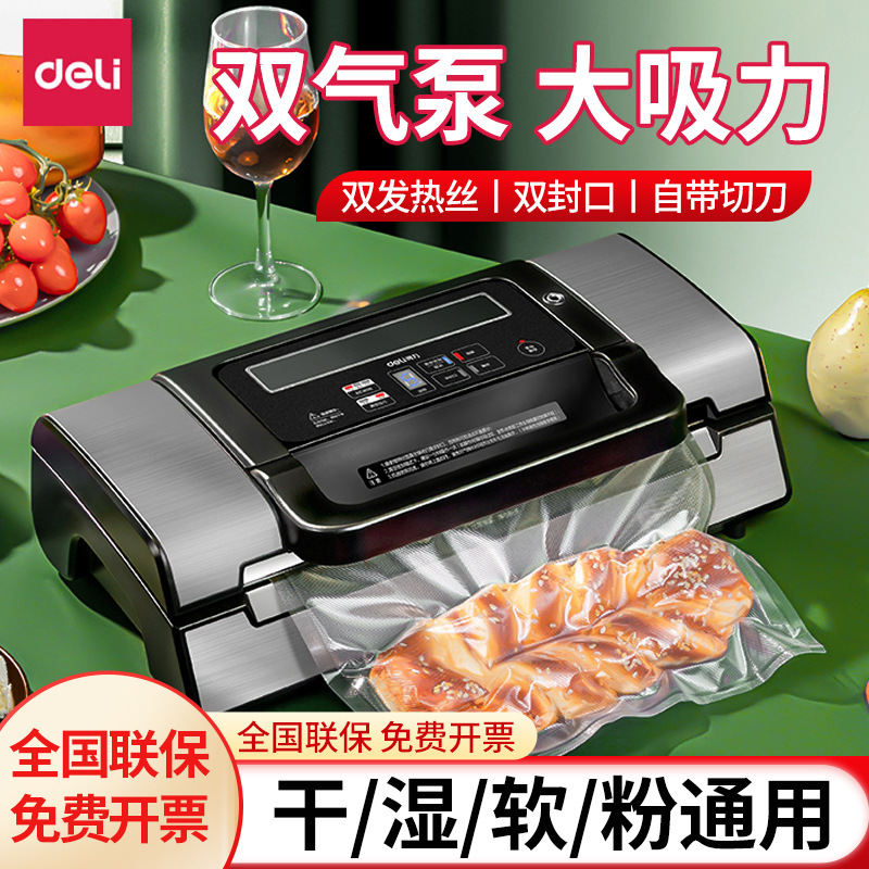 デリ LM668 真空包装機シール機乾湿両用家庭用商業プラスチックシール圧縮食品保存機