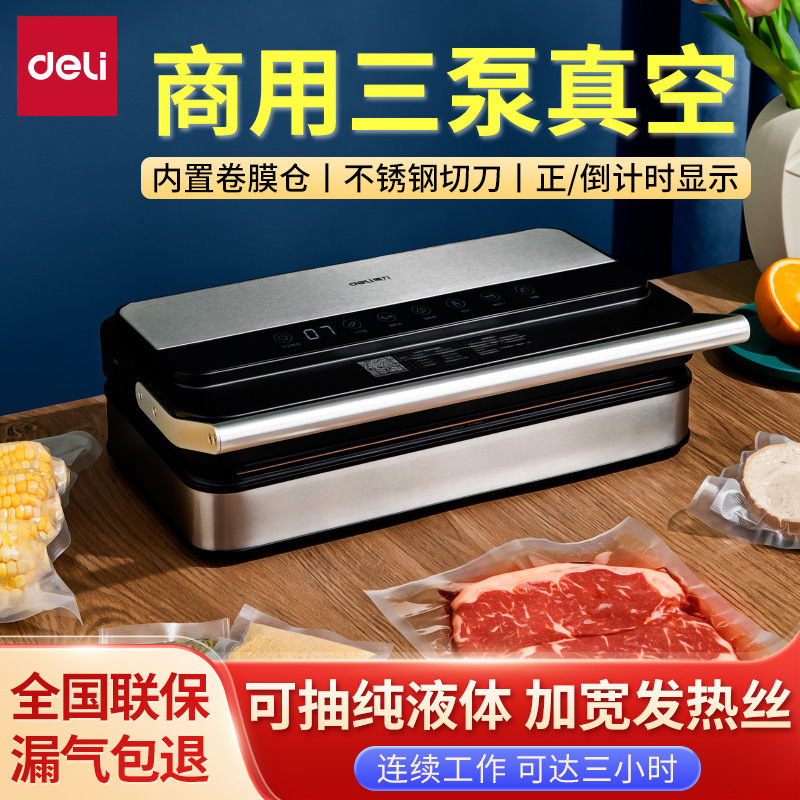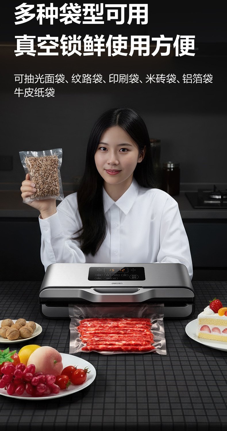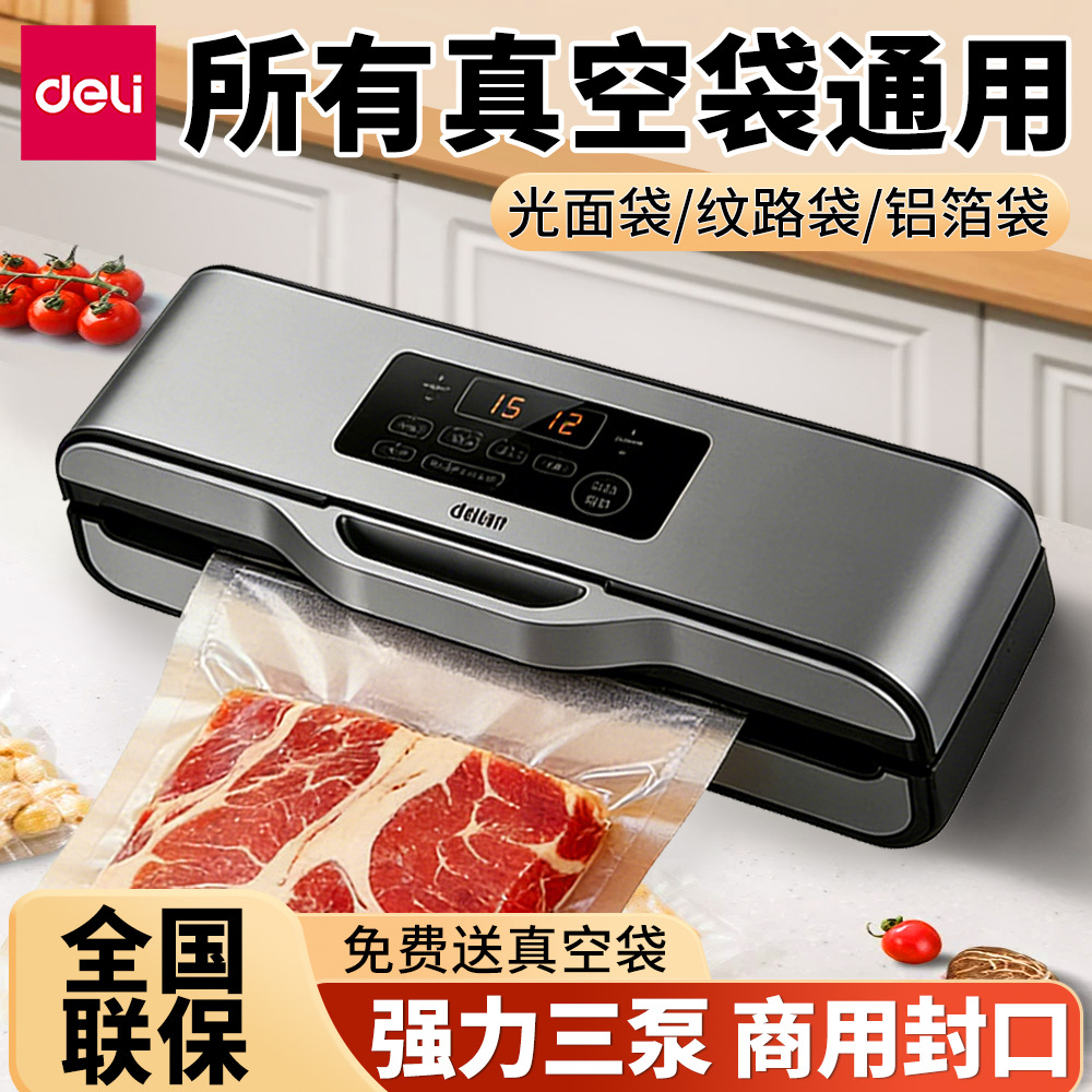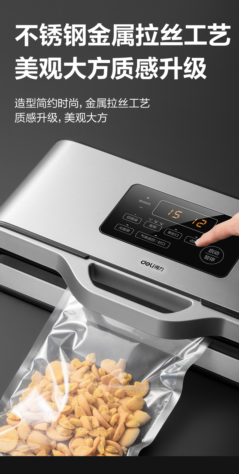 得力14891真空封口机商用 全自动食品保鲜机小型家用抽真空包装机