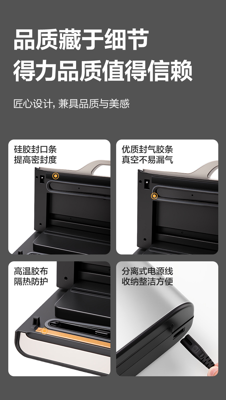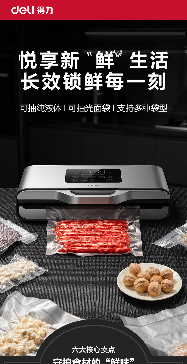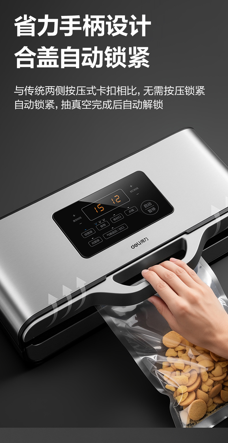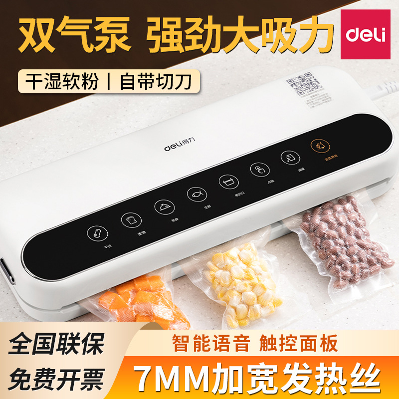 得力14891真空封口机商用 全自动食品保鲜机小型家用抽真空包装机