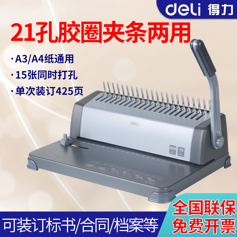 デリ 3872 製本機 ゴムリングクリップパンチングマシン 標札書類パンチング A4用紙15枚まで1回にパンチ可能