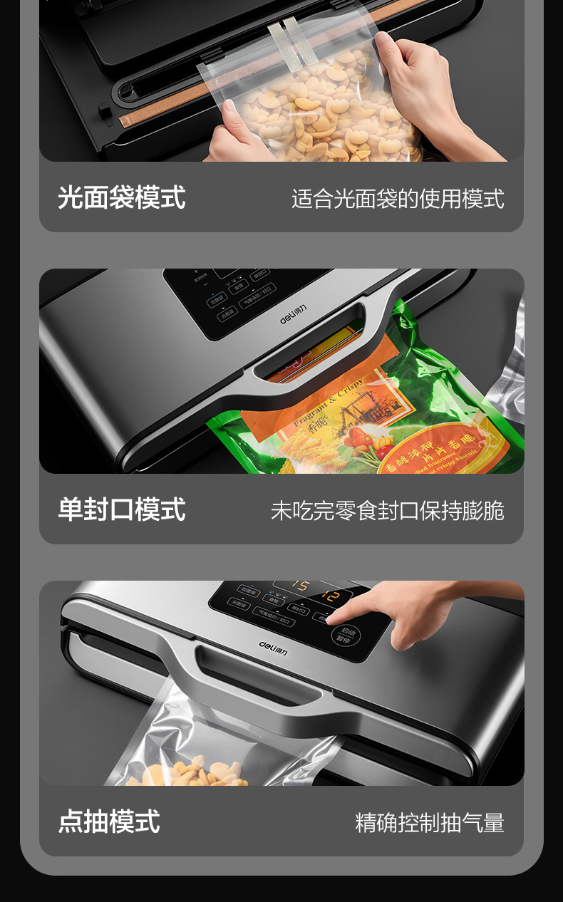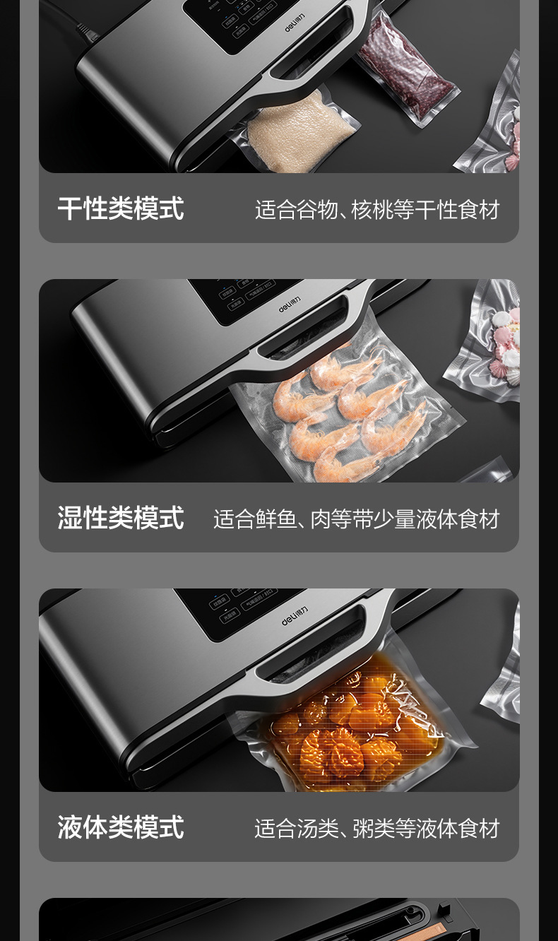 Deli LM891 真空シーラー、業務用食品袋包装機、真空家庭用乾湿両用オールインワン機