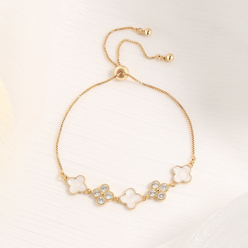 新しい四つ葉のクローバーの花の貝殻がちりばめられたダイヤモンドのプルアウトブレスレット、裕福な女性の娘、ハイエンドの社交界の女性のスタイルのハイエンドジュエリー