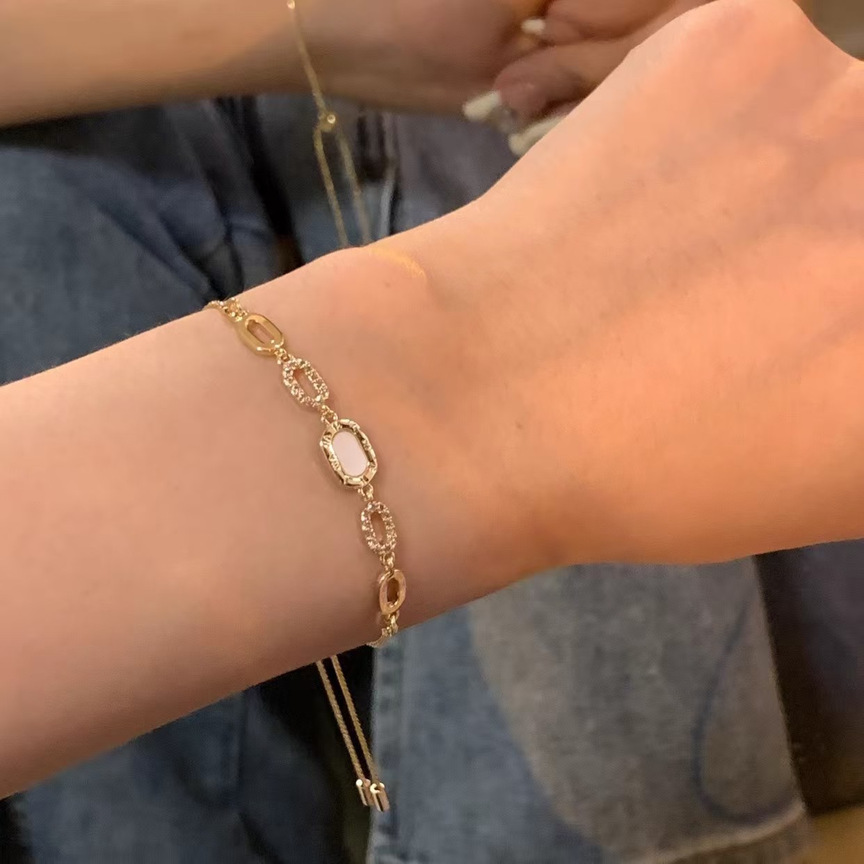 小衆気質猫眼石ジルコンブレスレットinsトレンド百合小衆手環デザイン感名媛ブレスレット卸売り