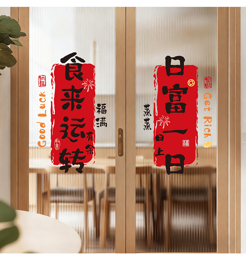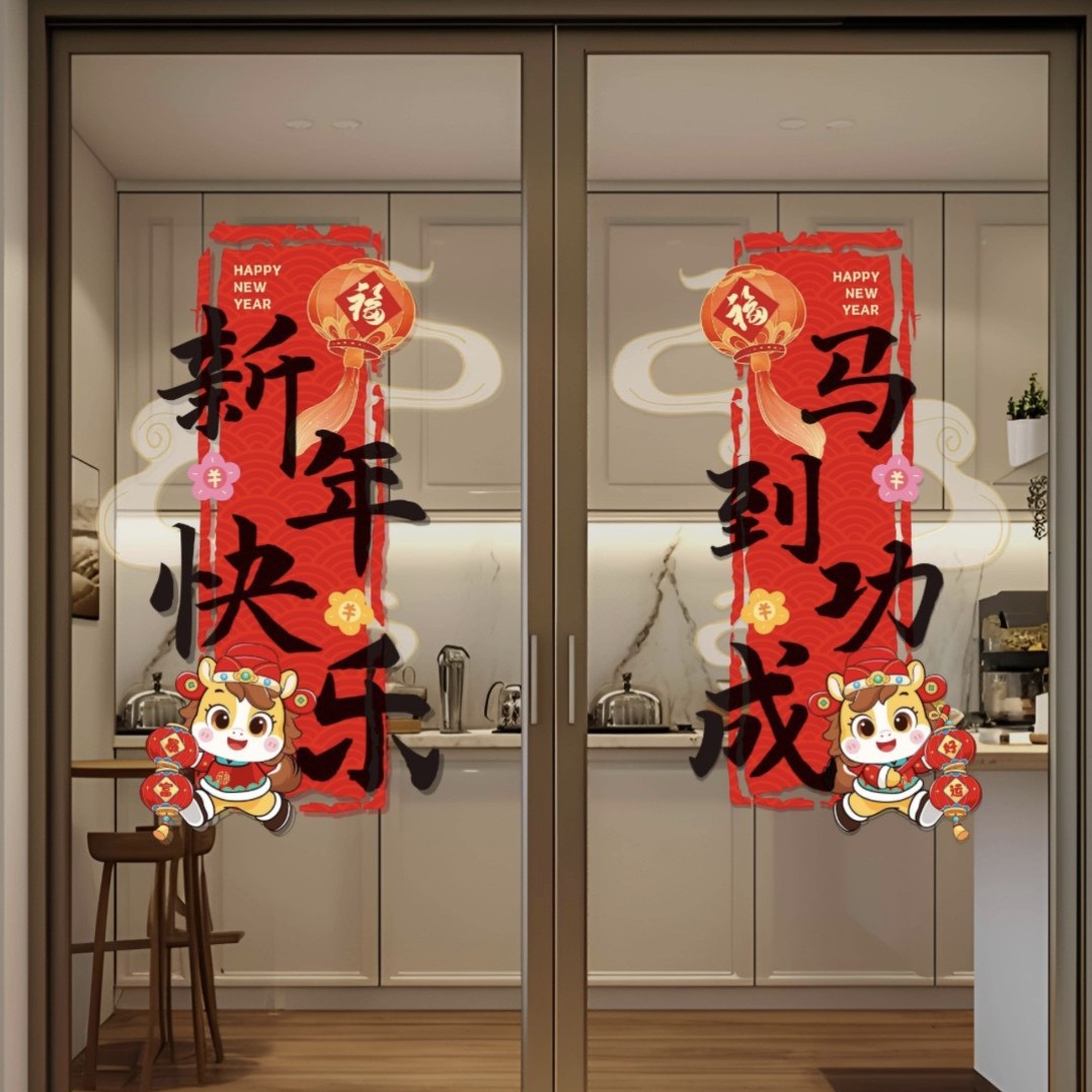 2026新款新年窗花厨房玻璃门贴纸挂件过年春节对联静电春联画装饰