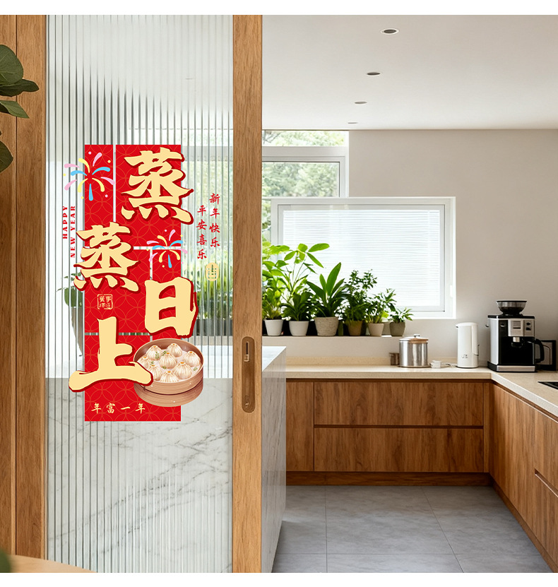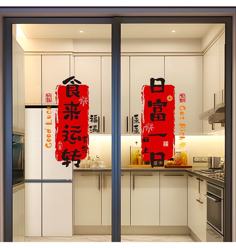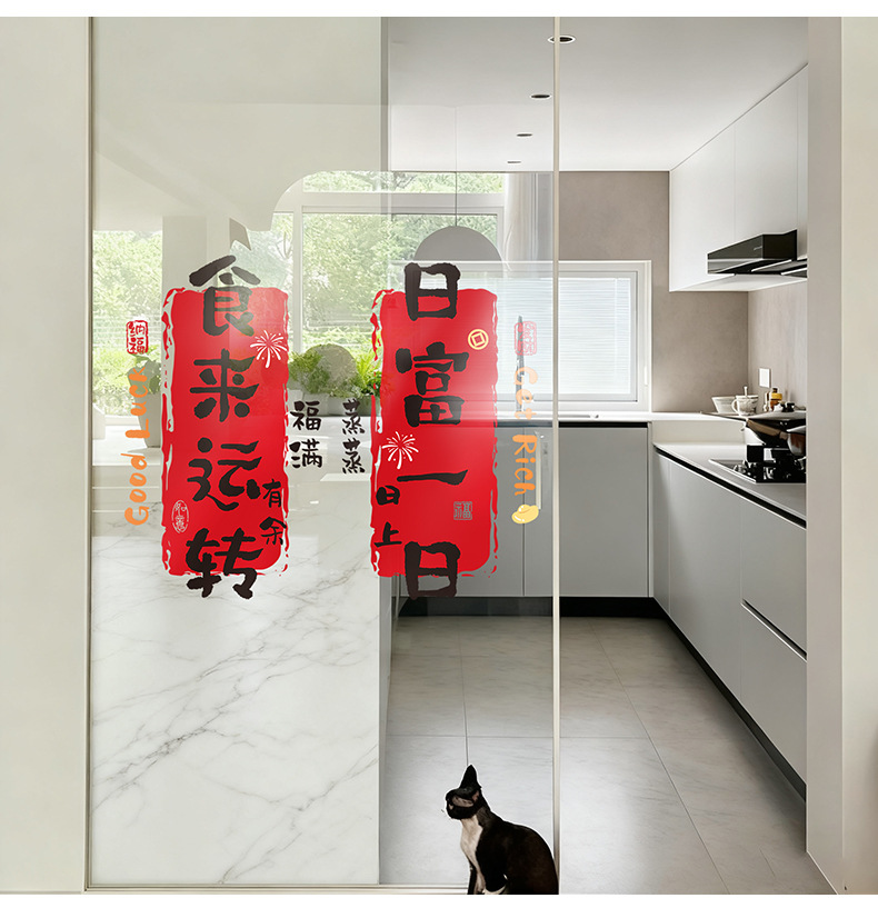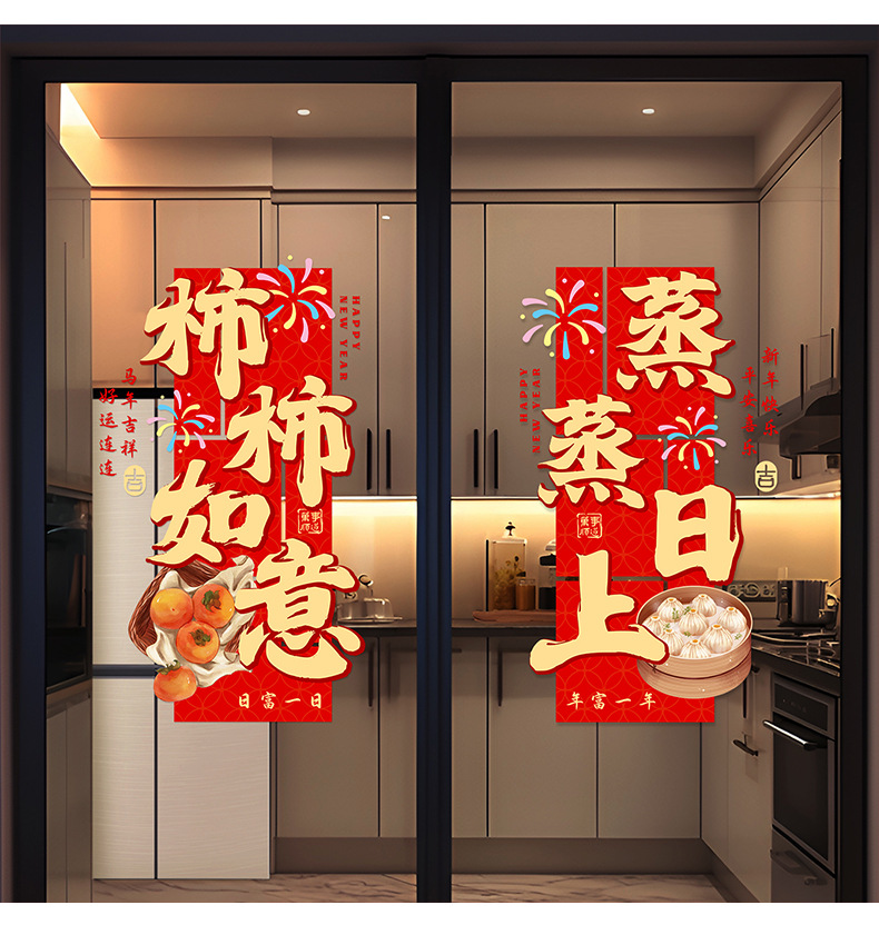 2026马年新款厨房静电玻璃静电门贴春节过年氛围场景布置装饰窗花
