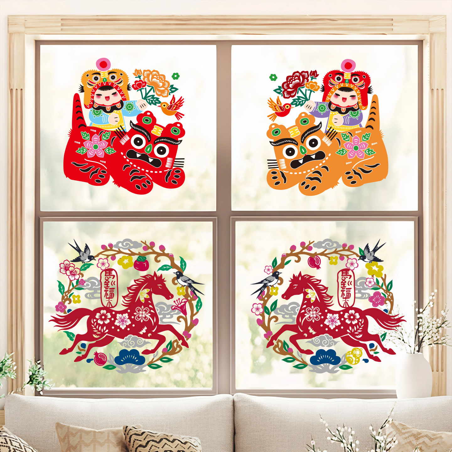 新年贴纸2026马年窗花蔚县静电贴春节装饰过年玻璃贴店面橱窗门贴