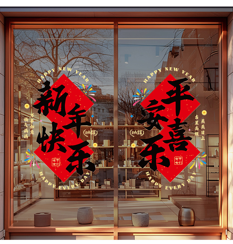 新年装饰2026窗花静电贴厨房玻璃门贴纸春节过年贺年喜庆布置用品