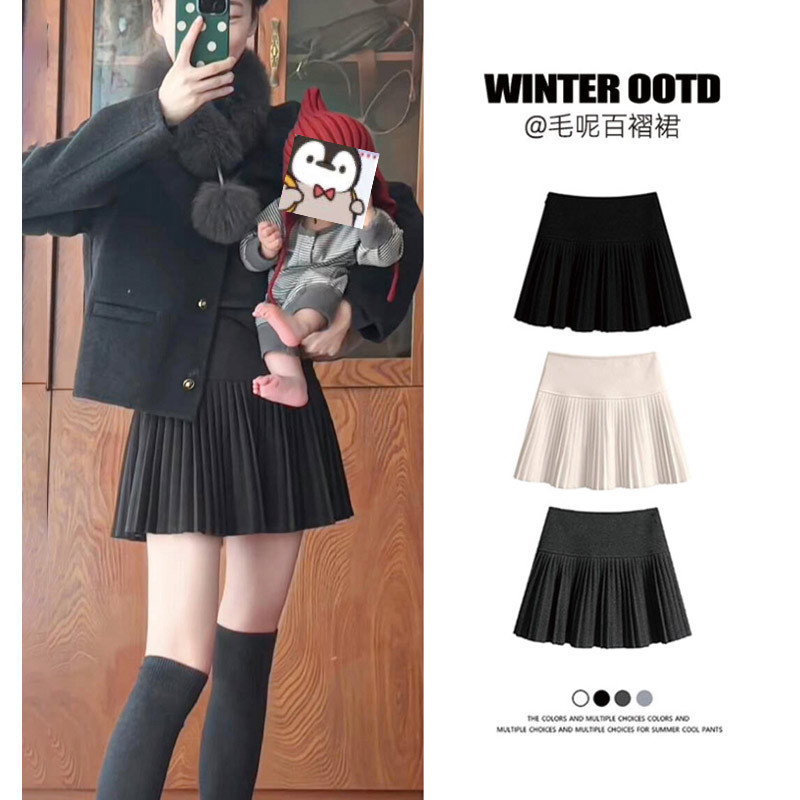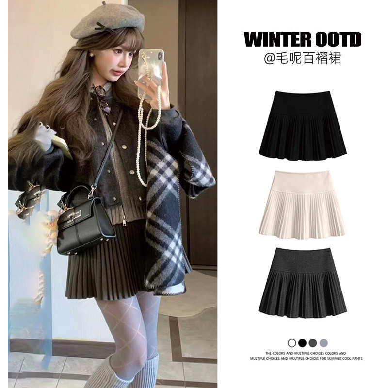 深灰色少女感毛呢百褶裙女秋冬季2025新款A字短裙高腰显瘦半身裙