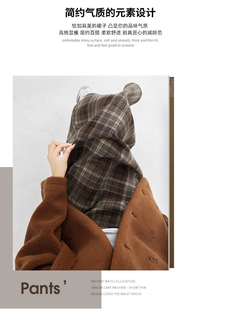 大きいサイズの太ったmmアメリカのレトロな格子は尻の半身のスカートの女性の秋冬の毛のa字の中で長いサイズの微太ったスカートを包みます。