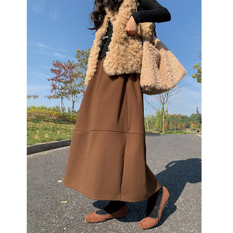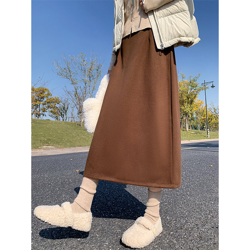 加绒咖色糯米裙女2025秋冬款高腰垂感a字半裙小个子半身长裙