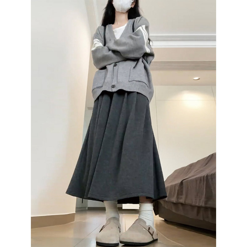 加绒灰色糯米裙子女2025秋冬新款高腰显瘦a字伞裙中长款半身裙子
