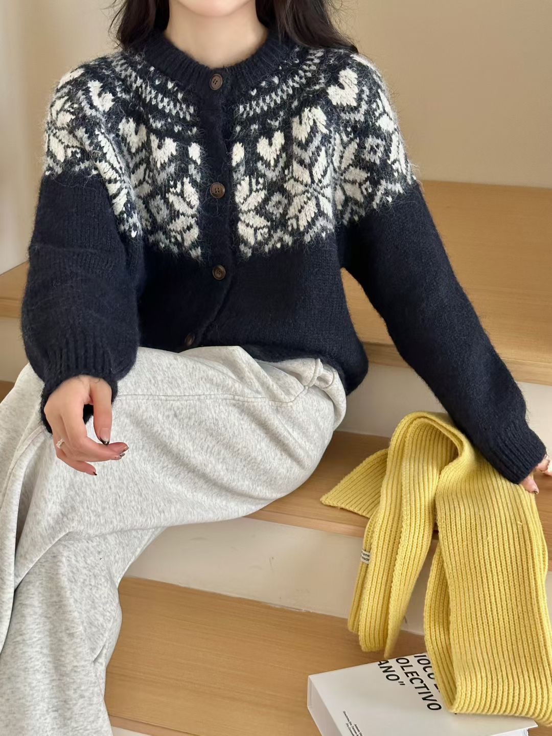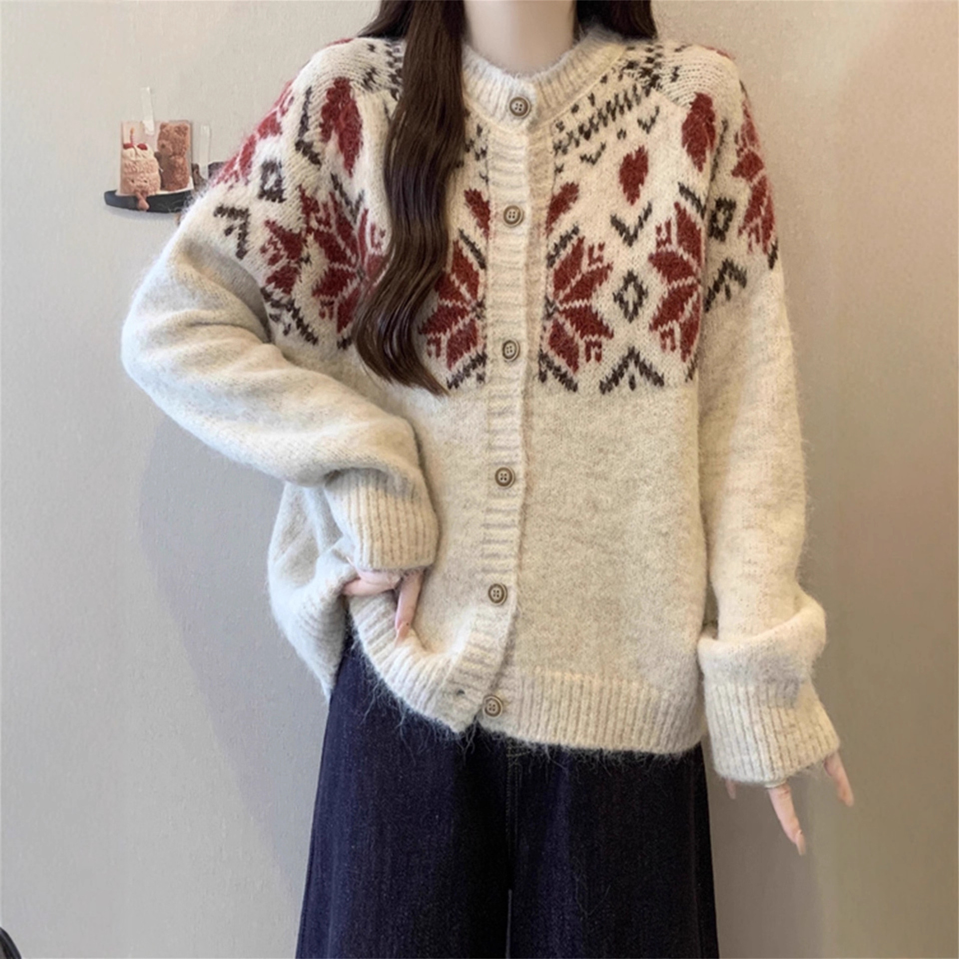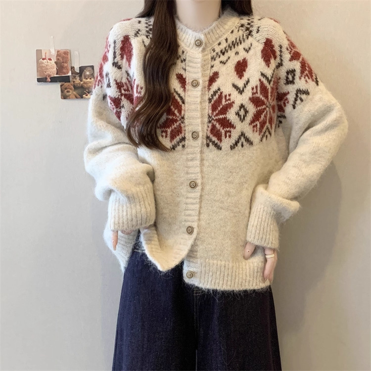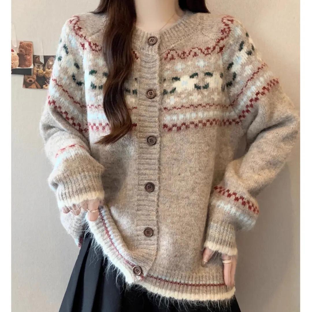 日系复古费尔岛针织开衫毛衣女2025秋冬新款宽松百搭慵懒风外套女