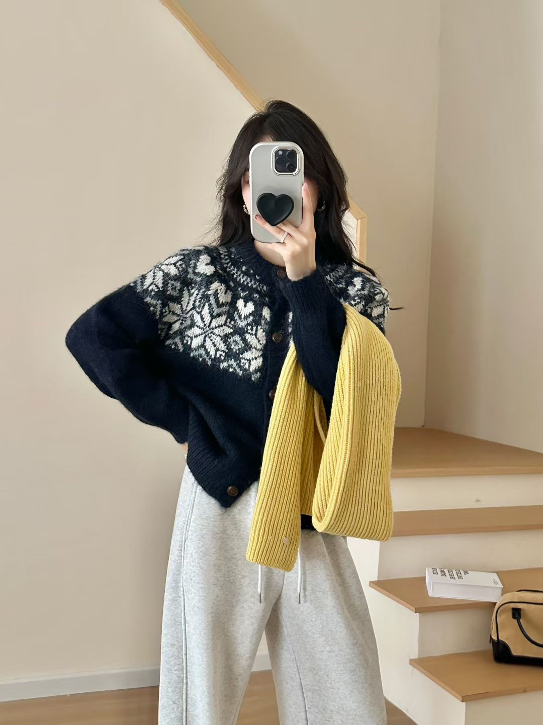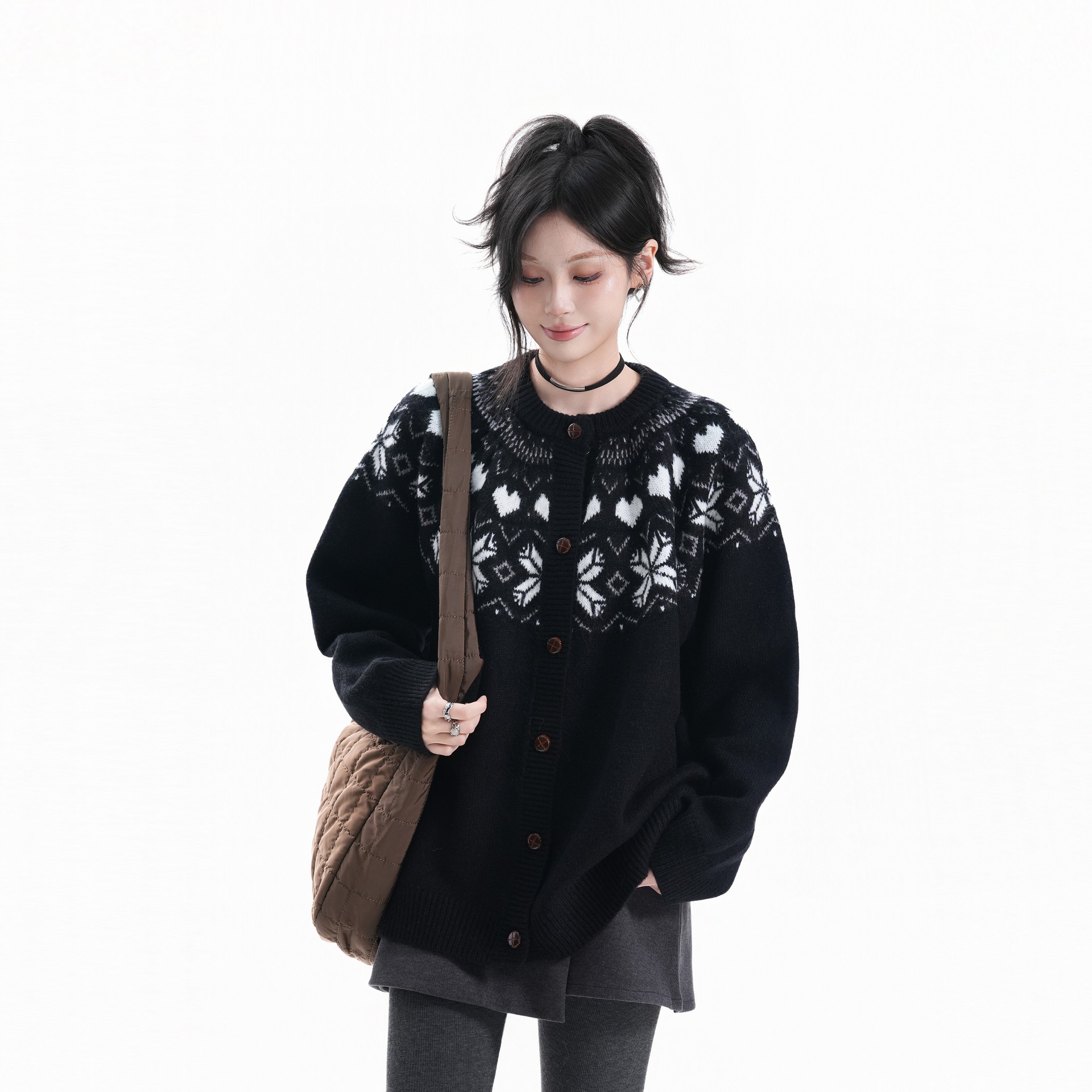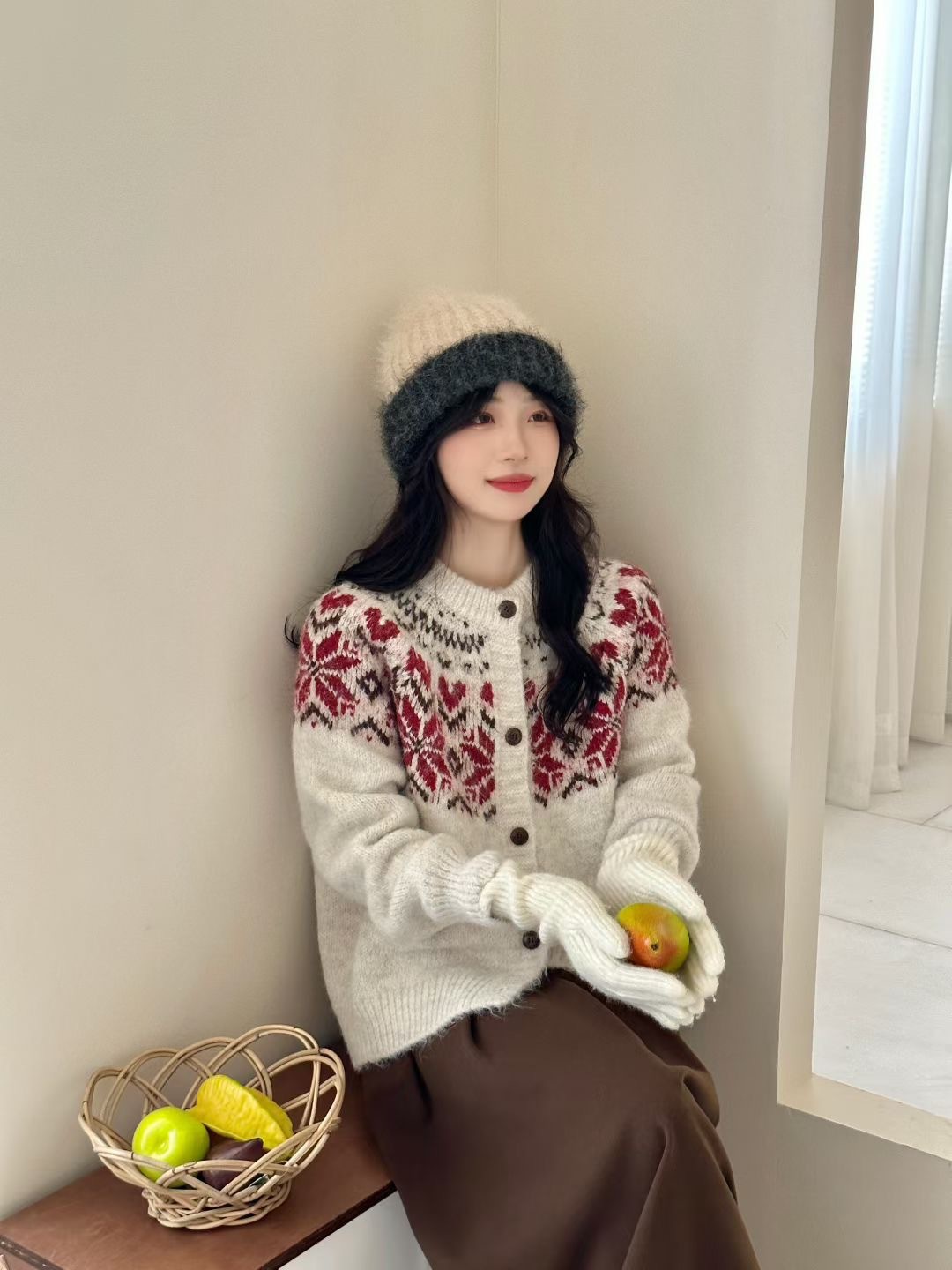 日系复古费尔岛针织开衫毛衣女2025秋冬新款宽松百搭慵懒风外套女