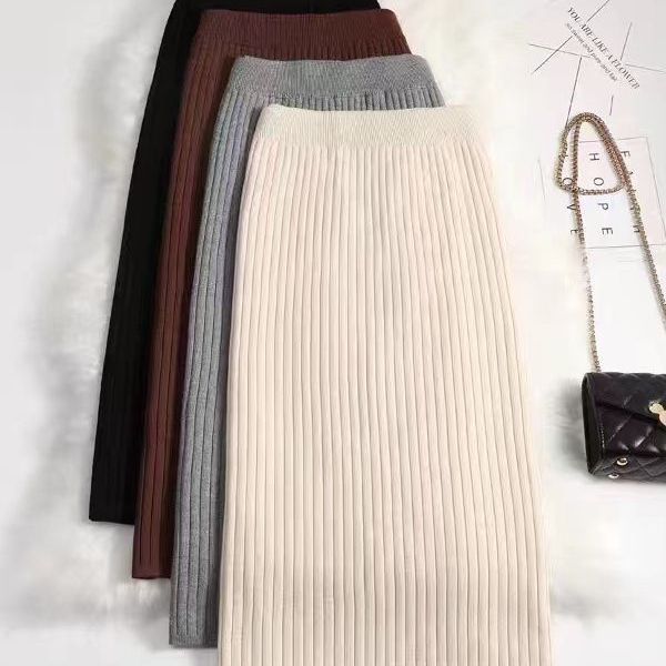 半身のスカートの女性の秋冬の坑条は膝の新型の韓国版の高い腰の修身を編みました。