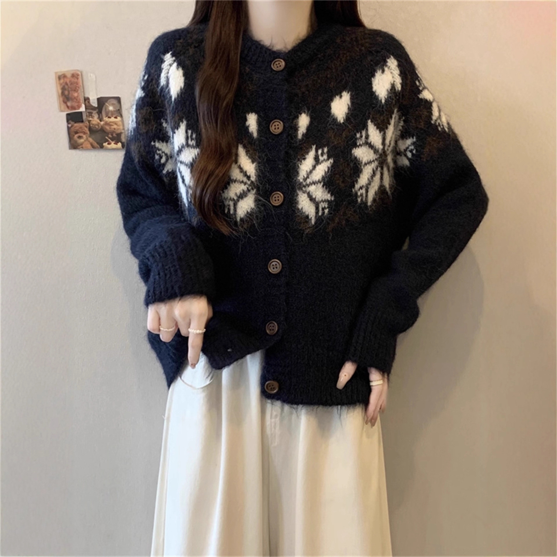 2025韩系穿搭慵懒风毛衣外套女新款秋冬针织开衫宽松上衣