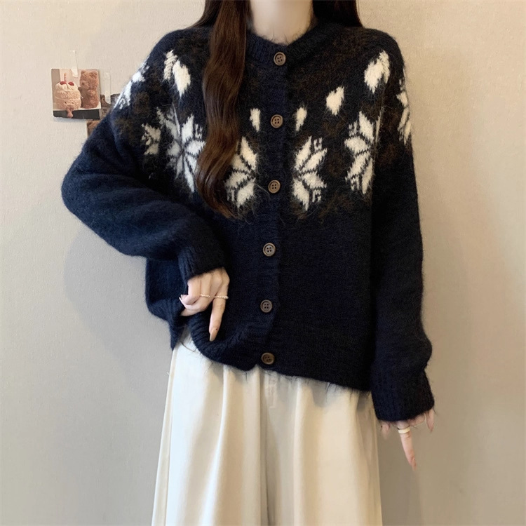 ブルーフェア島ニットセーターコート女性秋冬新作怠惰風高級感厚手カーディガン長袖上着