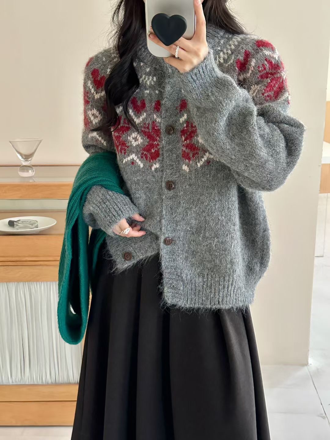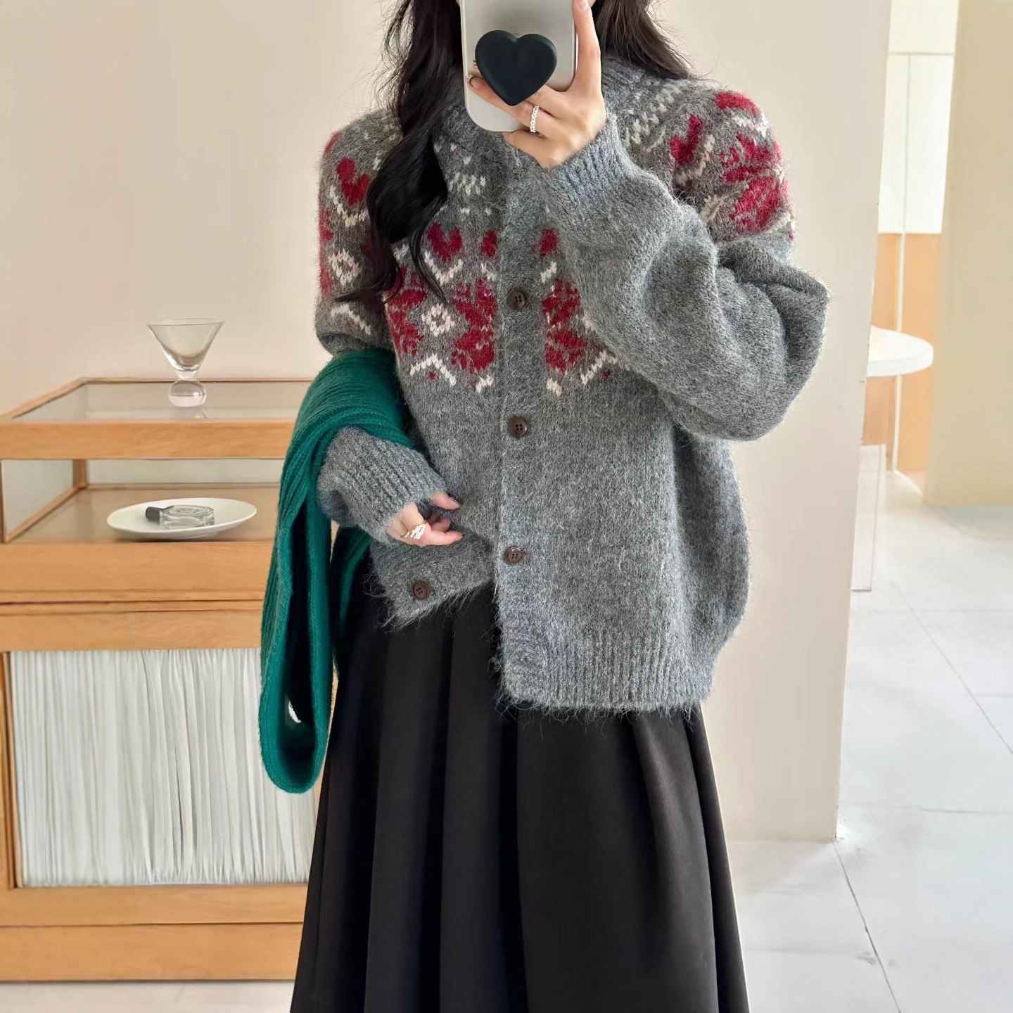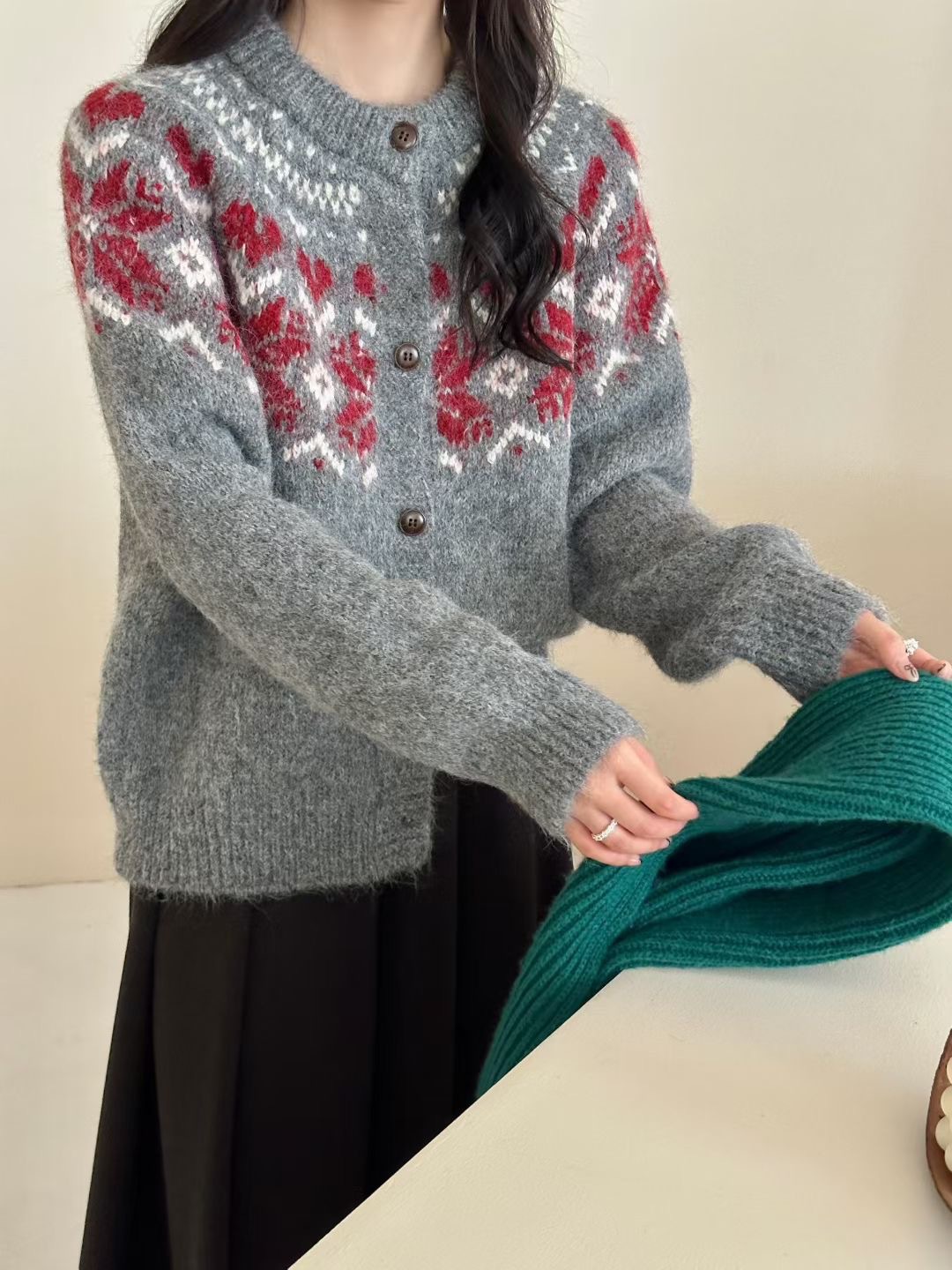 灰色费尔岛圣诞提花毛衣女款秋冬季设计感韩系穿搭宽松慵懒风上衣