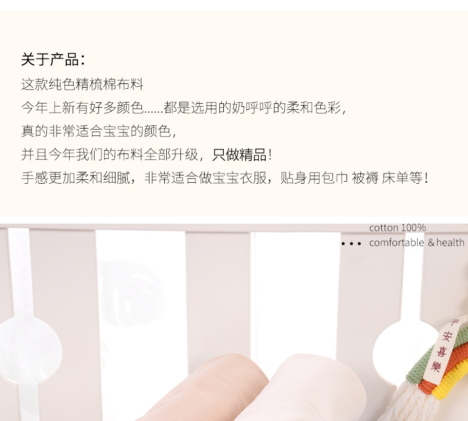 规格型号 淡黄色-磨毛精梳棉,纯白色-磨毛精梳棉,米白色-磨毛精梳棉,淡粉色-磨毛精梳棉,淡蓝色-磨毛精梳棉,奶橘色-磨毛精梳棉,青白绿-磨毛精梳棉,奶棕色-磨毛精梳棉