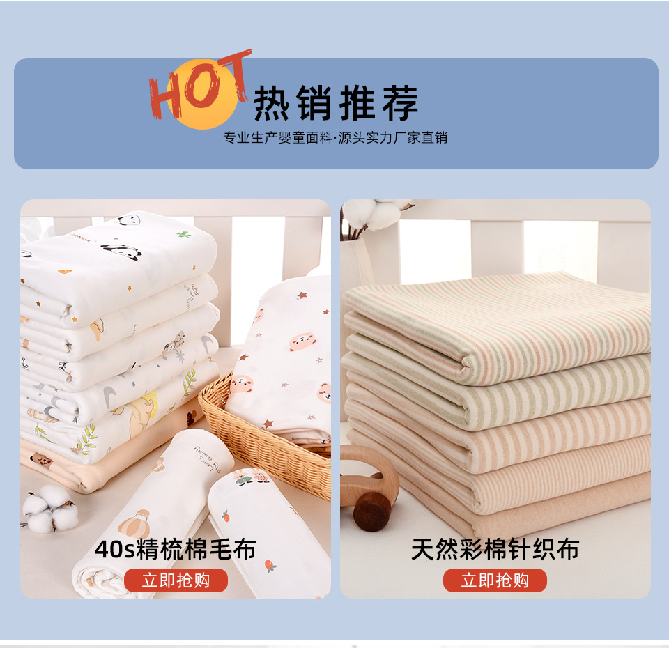A类针织棉布料宝宝棉布纯棉婴儿面料棉秋衣秋裤被子床品包被柔软