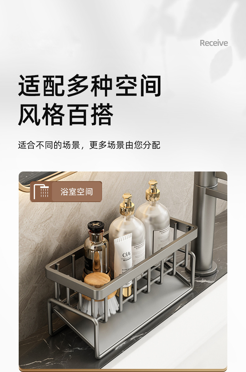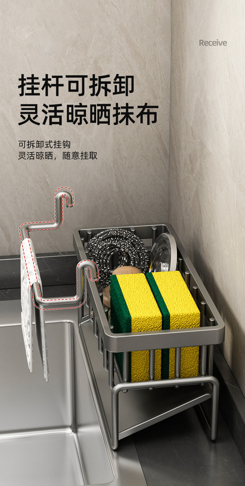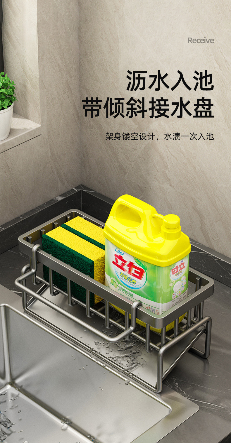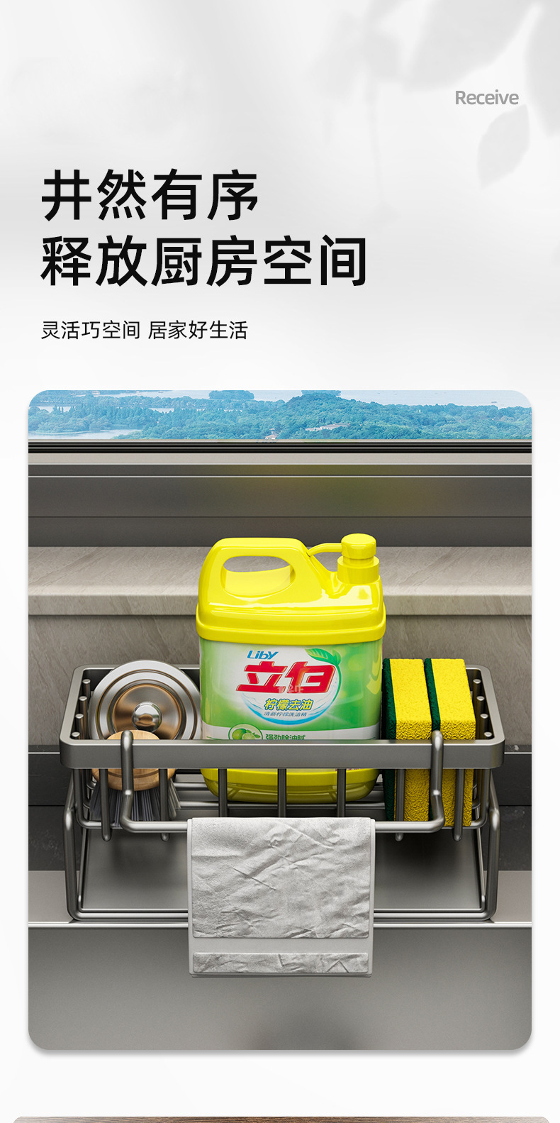 厨房置物架毛巾架子免打孔卫生间沥水架放洗碗洁精钢丝球收纳神器