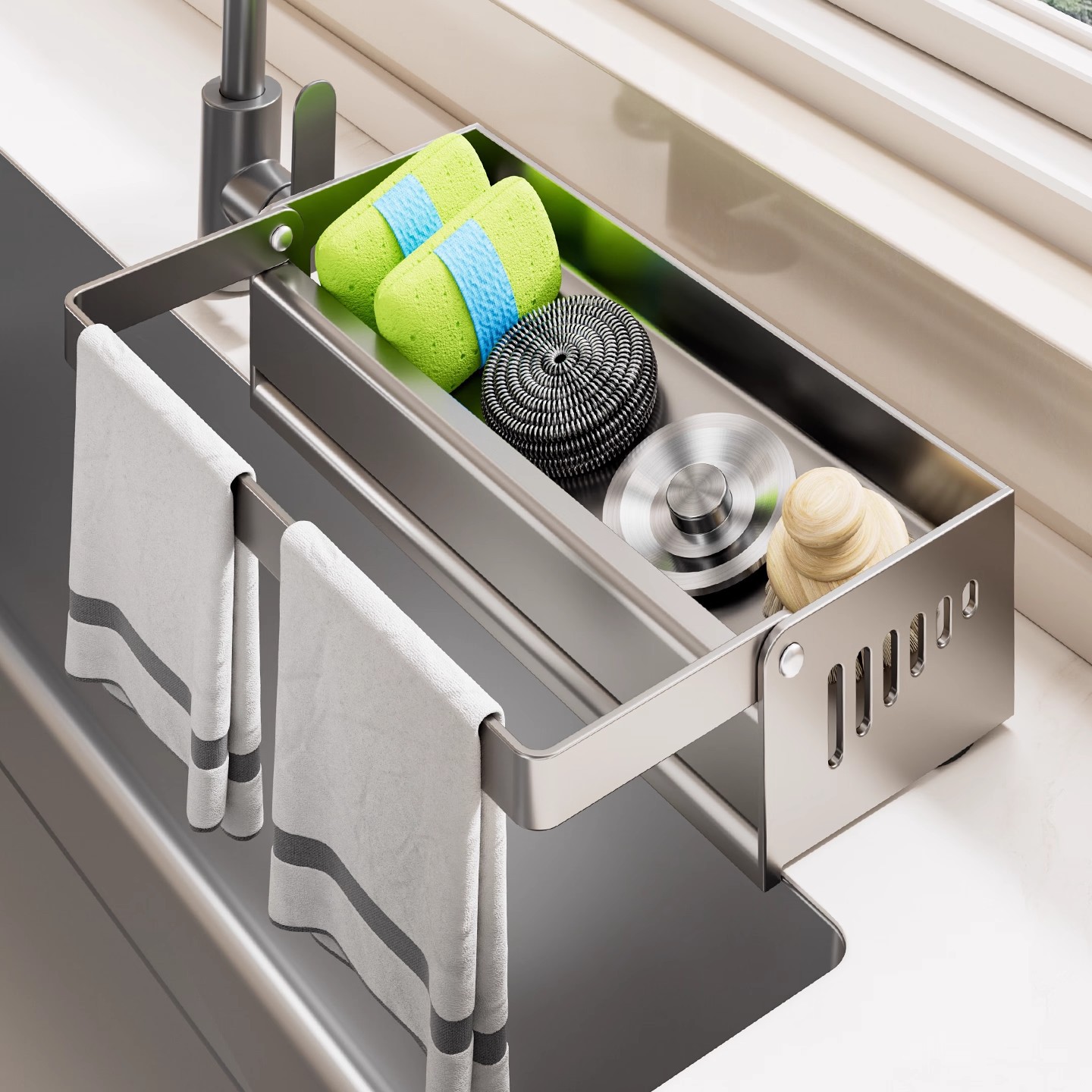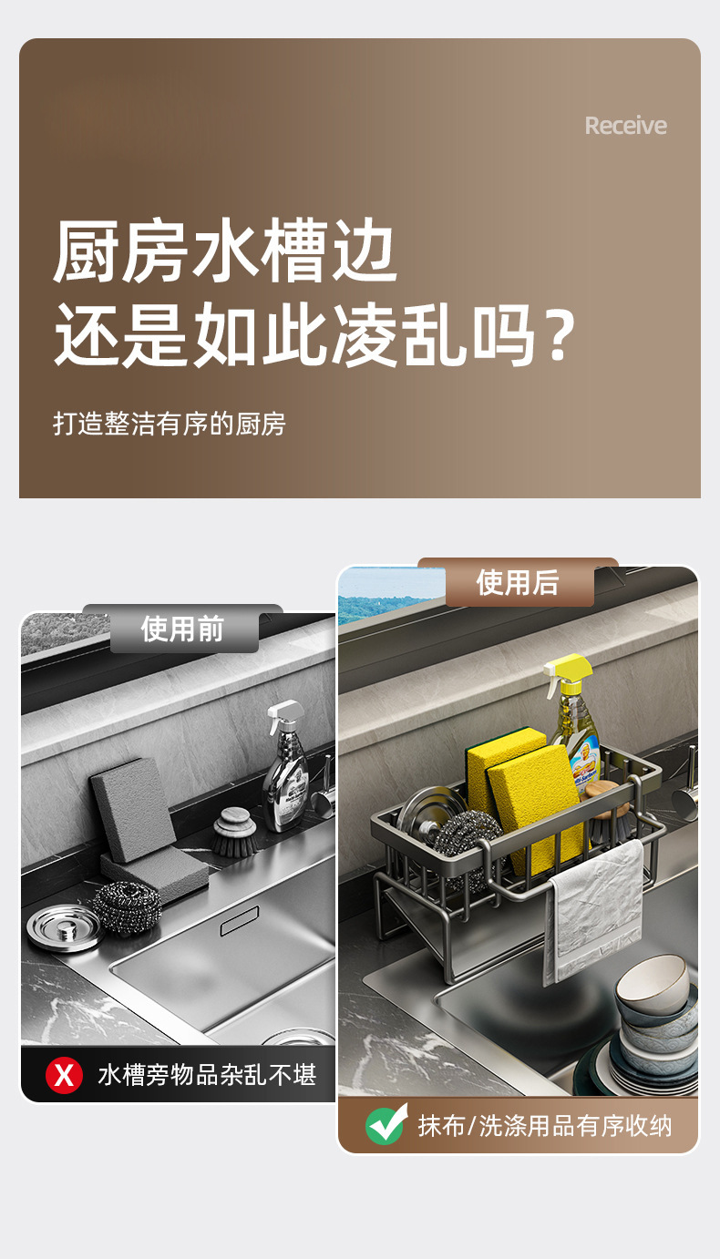 厨房置物架水槽抹布沥水架碳钢龙头放洗碗洁精钢丝球收纳架子神器