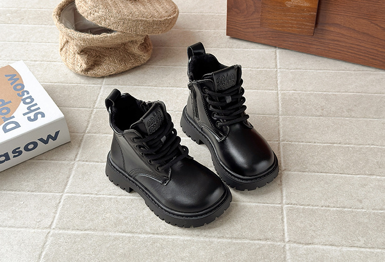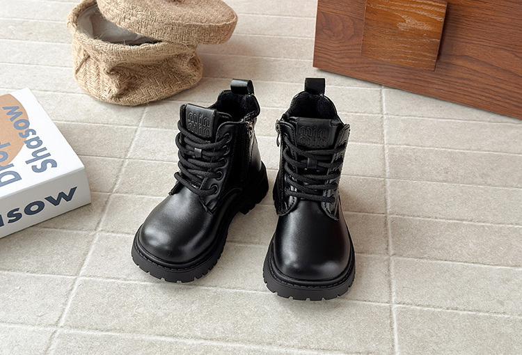 ins英伦风马丁靴2025秋冬季新款韩版女童加绒烟筒靴男童厚底短靴
