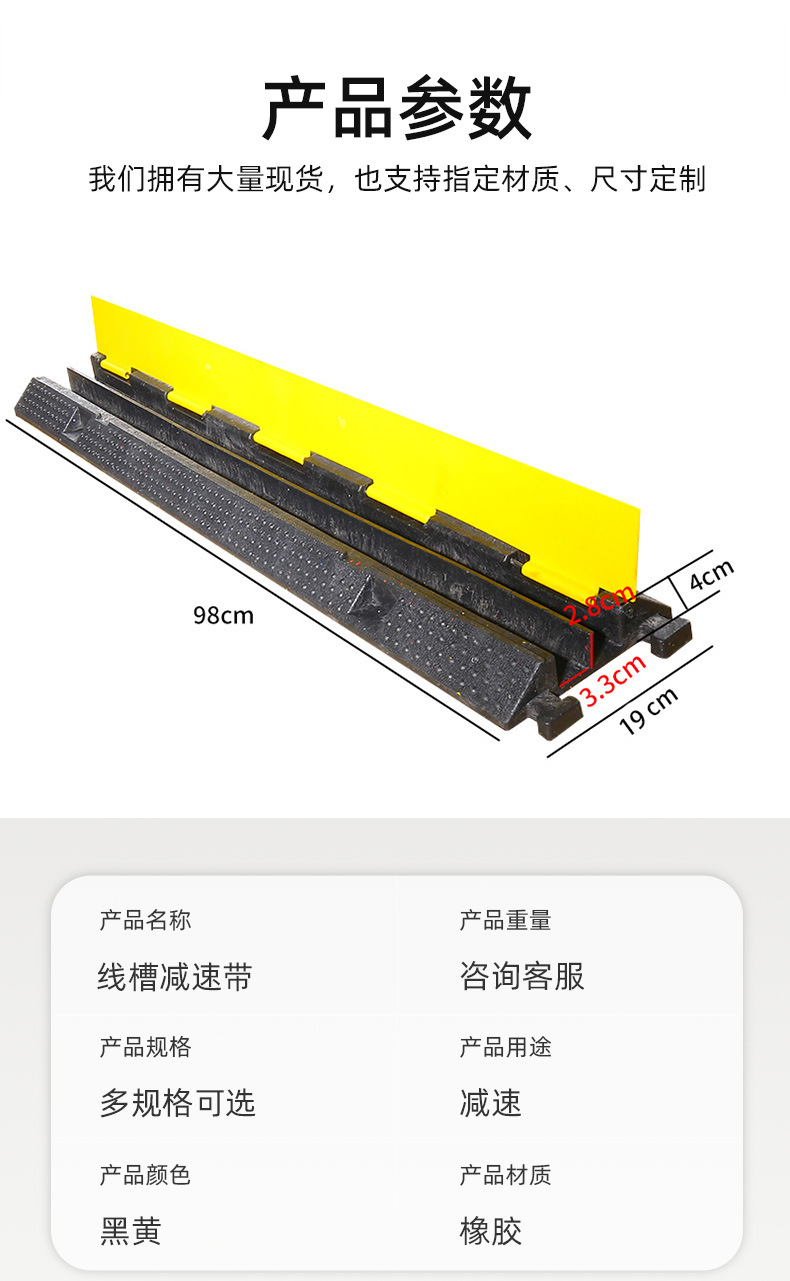 量大优惠,运费联系客服,PVC无孔黄色,PVC无孔黑色,PVC带孔黄色,PVC带孔黑色,PVC大一线黄色,PVC大2线黄色,橡塑小一线,橡塑小二线,橡塑中一线,橡塑小三线,橡塑中二线,橡塑大一线,橡塑大二线,橡塑大三线,橡塑大四线,橡塑大五线,【槽径1.8*1.8cm】橡胶10宽方块一槽,【槽径1.8*1.8cm】橡塑10宽方块一线槽1.8,【槽径2.4*2.4cm】橡胶15方块一槽,【槽径2.4*2.4cm】橡塑15宽方块一线槽,橡胶15宽波点一线,橡胶黄胶小一线空心款,橡胶黄胶小一线实心款,橡胶20宽方块一槽,橡塑20宽方块一线槽,橡胶30宽波点一线常规款,橡胶30宽波点二线常规款,橡胶30宽方块一线-可过大车,橡胶30宽方块二线-可过大车,橡胶30宽波点二线加重款,橡胶盖板小一线槽径:2*7cm,橡胶盖板小二线槽径:3*3cm,橡胶盖板中一线槽径:5*7cm,橡胶盖板中二线槽径:5*5.5cm,橡胶盖板小三线槽径:3*3.5cm,橡胶盖板大一线槽径:8*8cm款,橡胶盖板大一线槽径: 11*13cm款,橡胶盖板大二线槽径:7*9cm,橡胶盖板大三线槽径:5.5*6.5cm款,橡胶盖板大四线槽径:4*4.5cm,橡胶盖板大五线槽径:3*3.5cm,【槽径95*33MM】橡胶人字形一线,【槽径50*50MM】橡胶人字形一线,橡胶【槽径95*33MM】人字形全黑一线,橡塑奔驰一线【槽径5*7】(一米整体款),【槽径33*35MM】橡塑奔驰一线,【槽径70*50MM】橡塑奔驰一线(橡塑半米长二合一款),矿区一槽,矿区二槽,矿区大一槽,矿区大二槽,W5*7,W7*-7,W8*8,W9*11