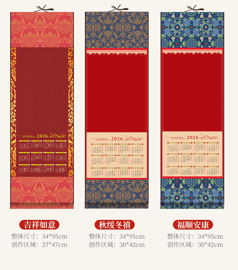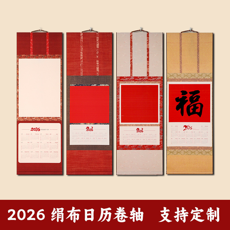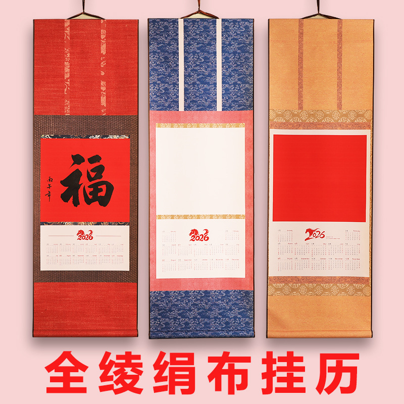 2026年日历卷轴挂历高档绢布款挂轴毛笔空白书法专用绫绢画轴定制
