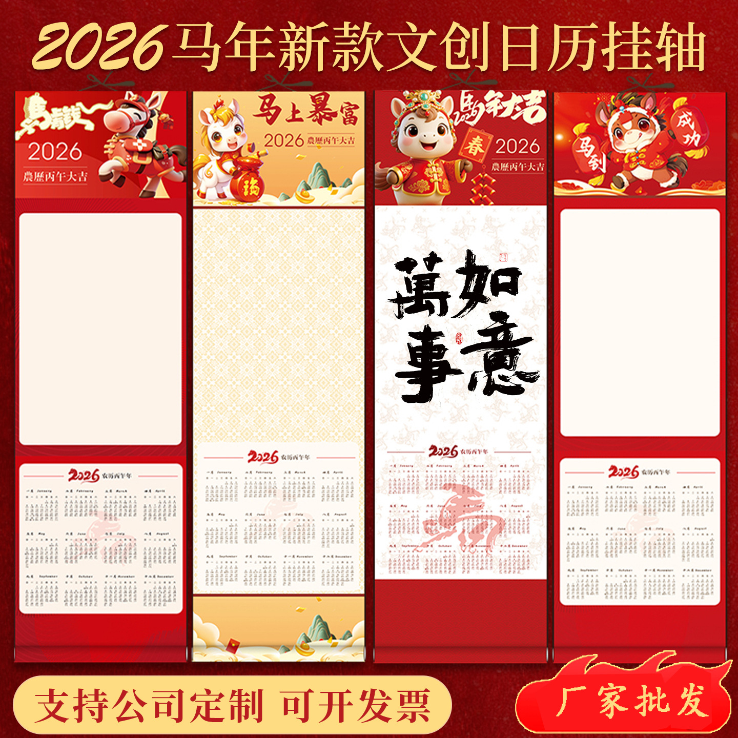 新款2026马年国风挂历宣纸挂轴创意广告日历卷轴空白挂轴批发