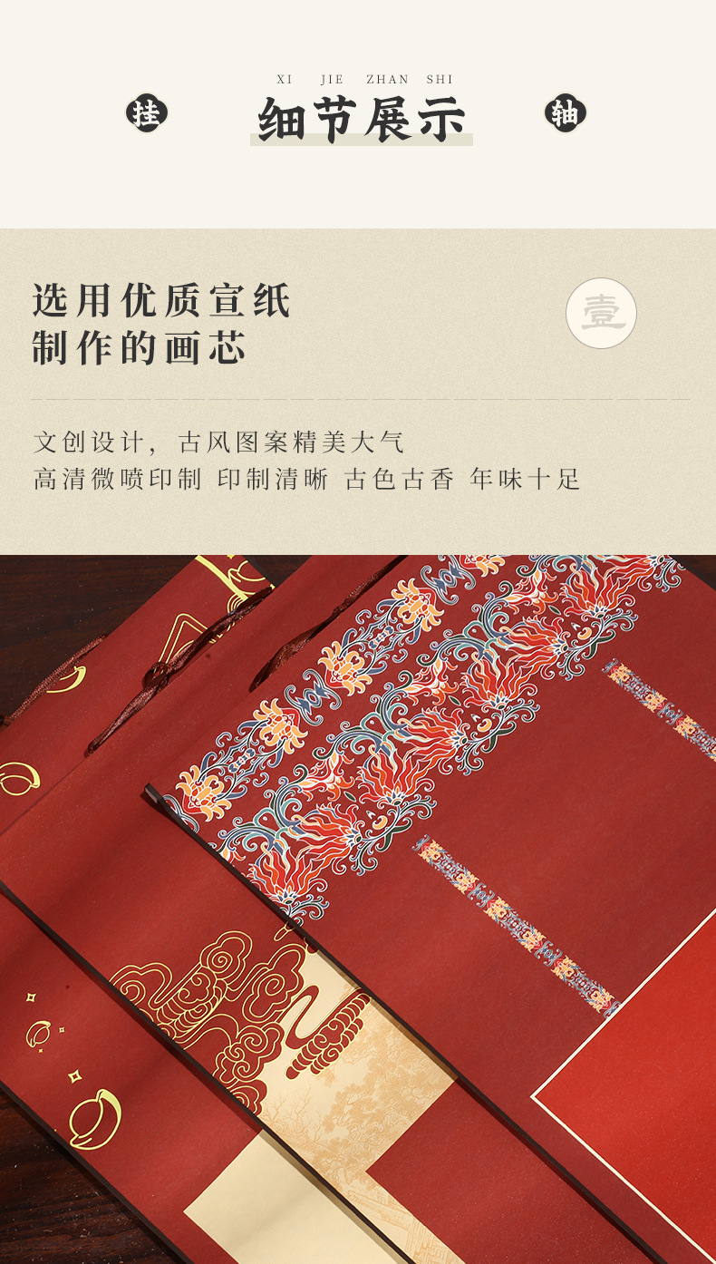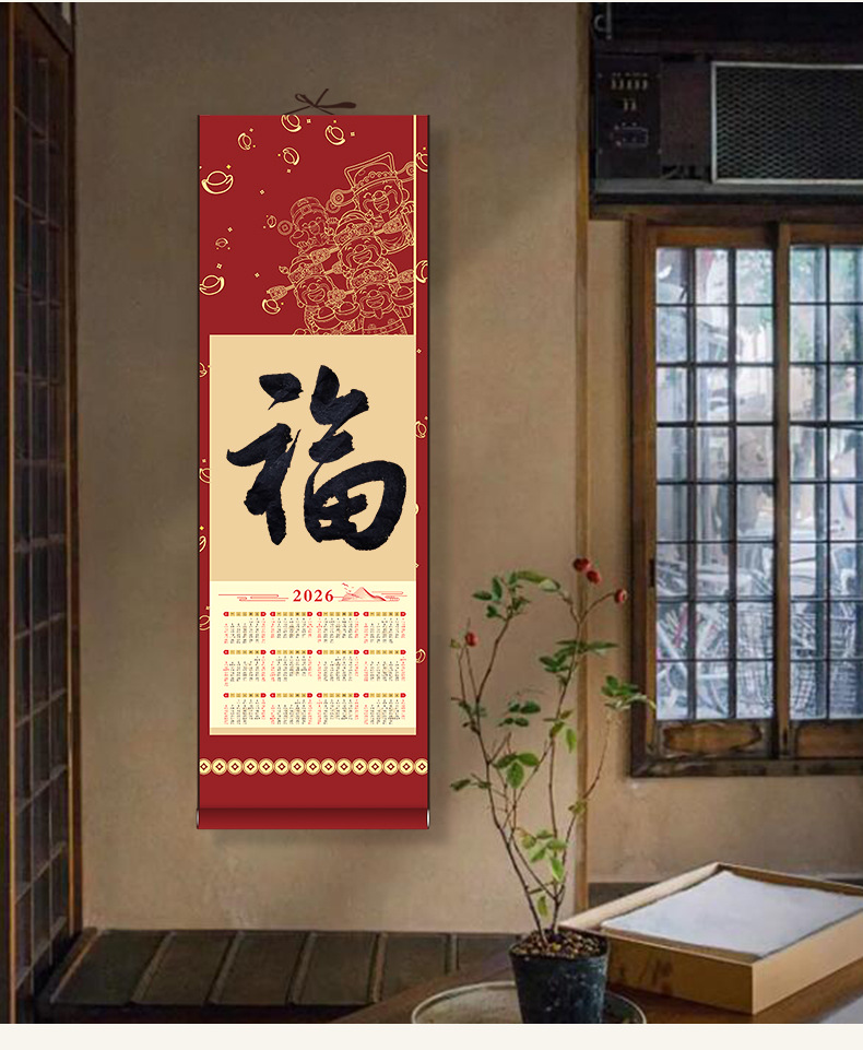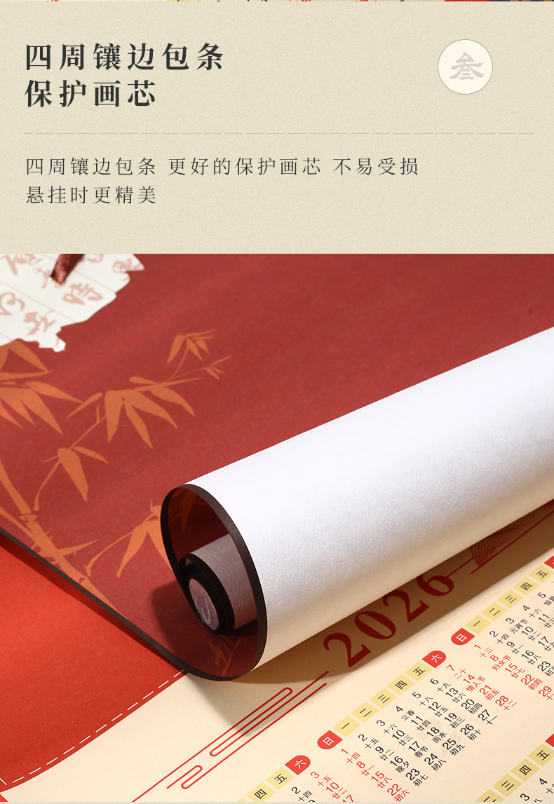 2026挂历日历宣纸挂轴空白卷轴万年红蜡染字画创作卷轴福字年历