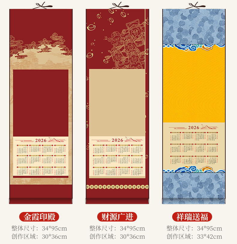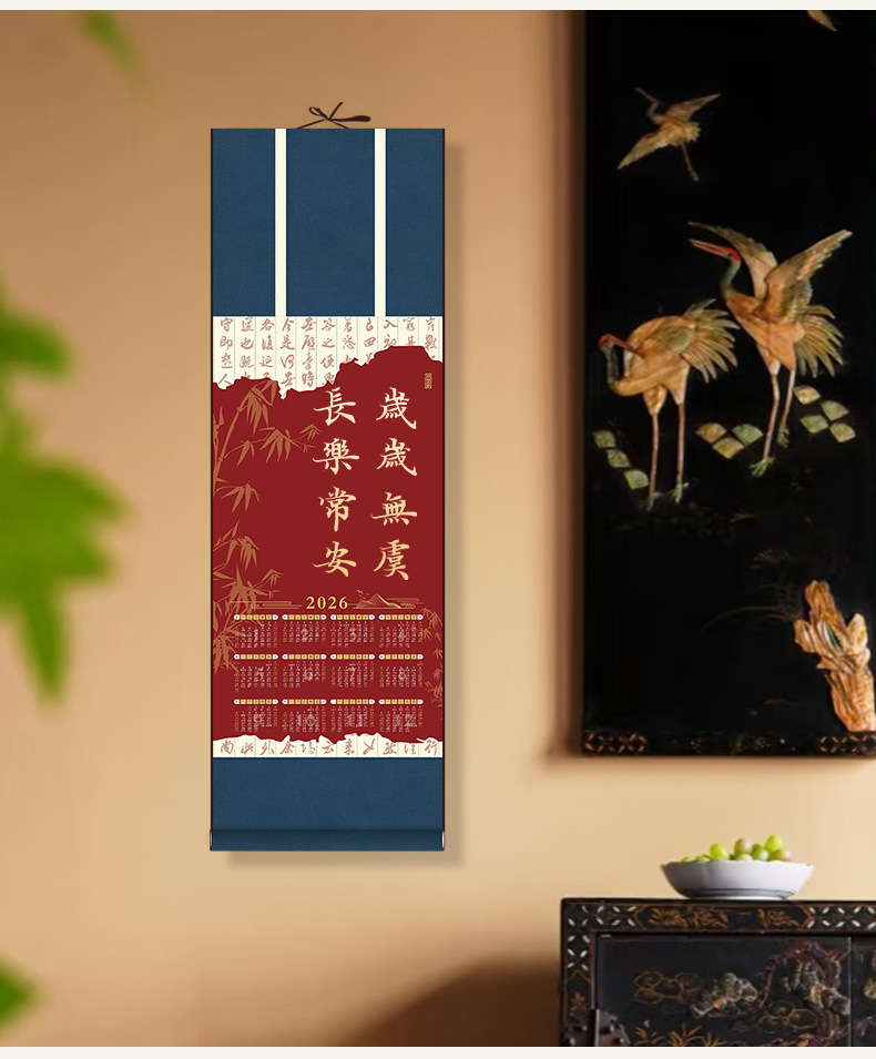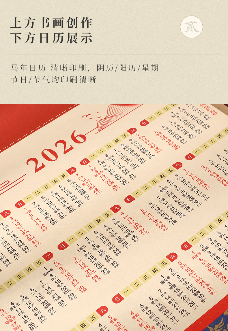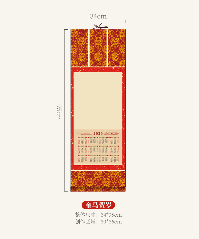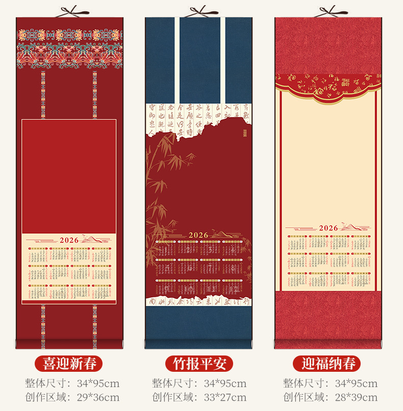 2026年挂历空白蜡染卷轴马年万年红宣纸文创日历国画书法挂轴批发