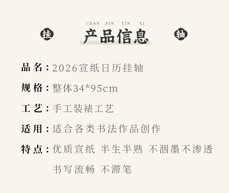 2026年宣纸空白古风日历挂轴卷轴文创书法马年春节新春挂历