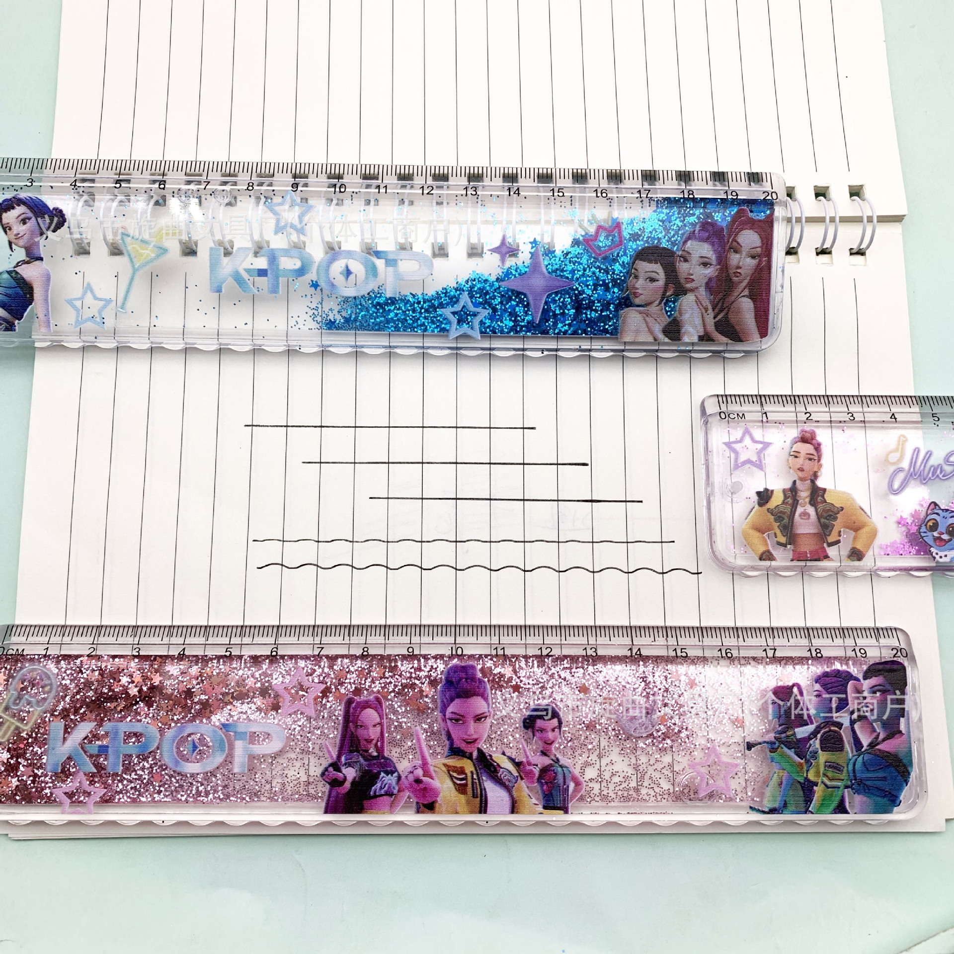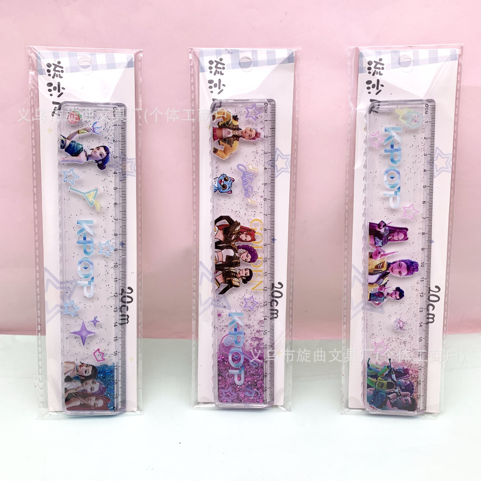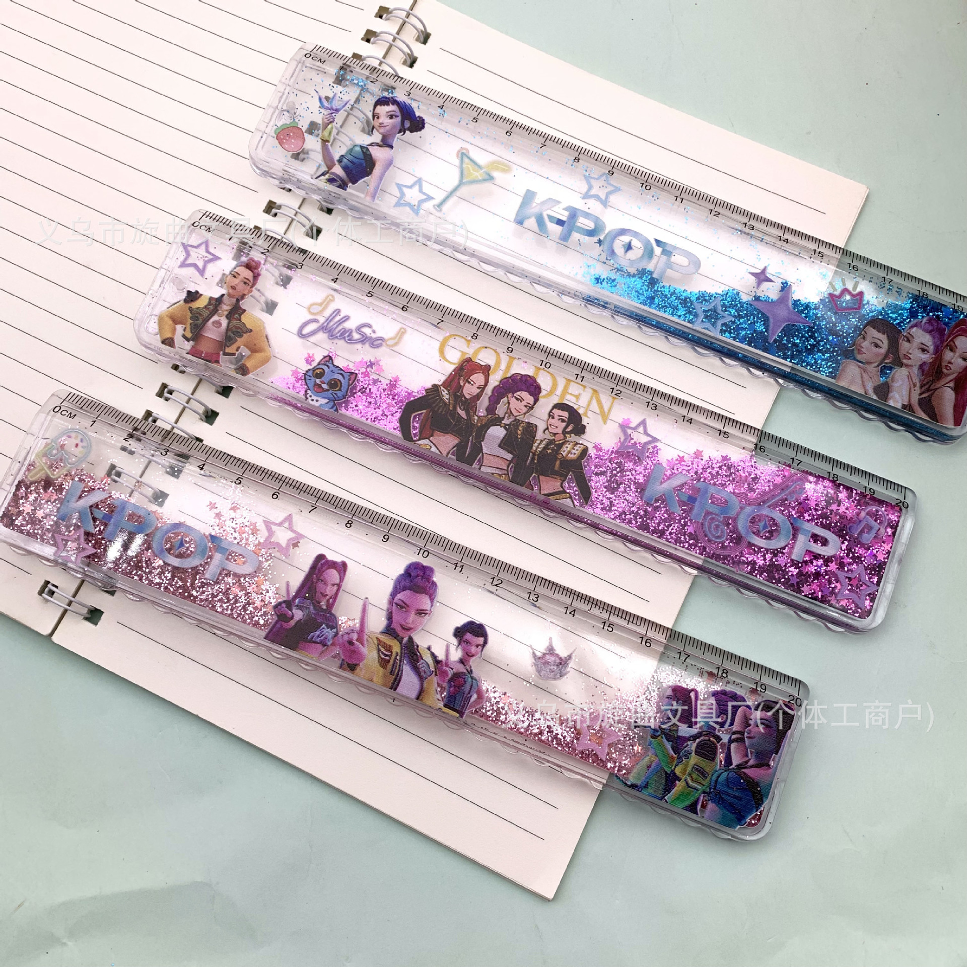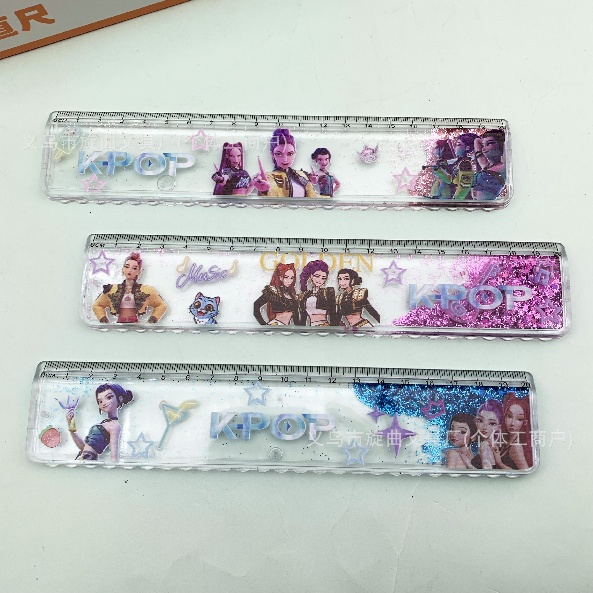 跨境爆款K-POP猎魔女团流沙尺高颜值卡通20cm入油尺学生绘图直尺