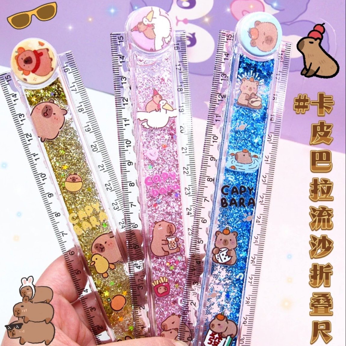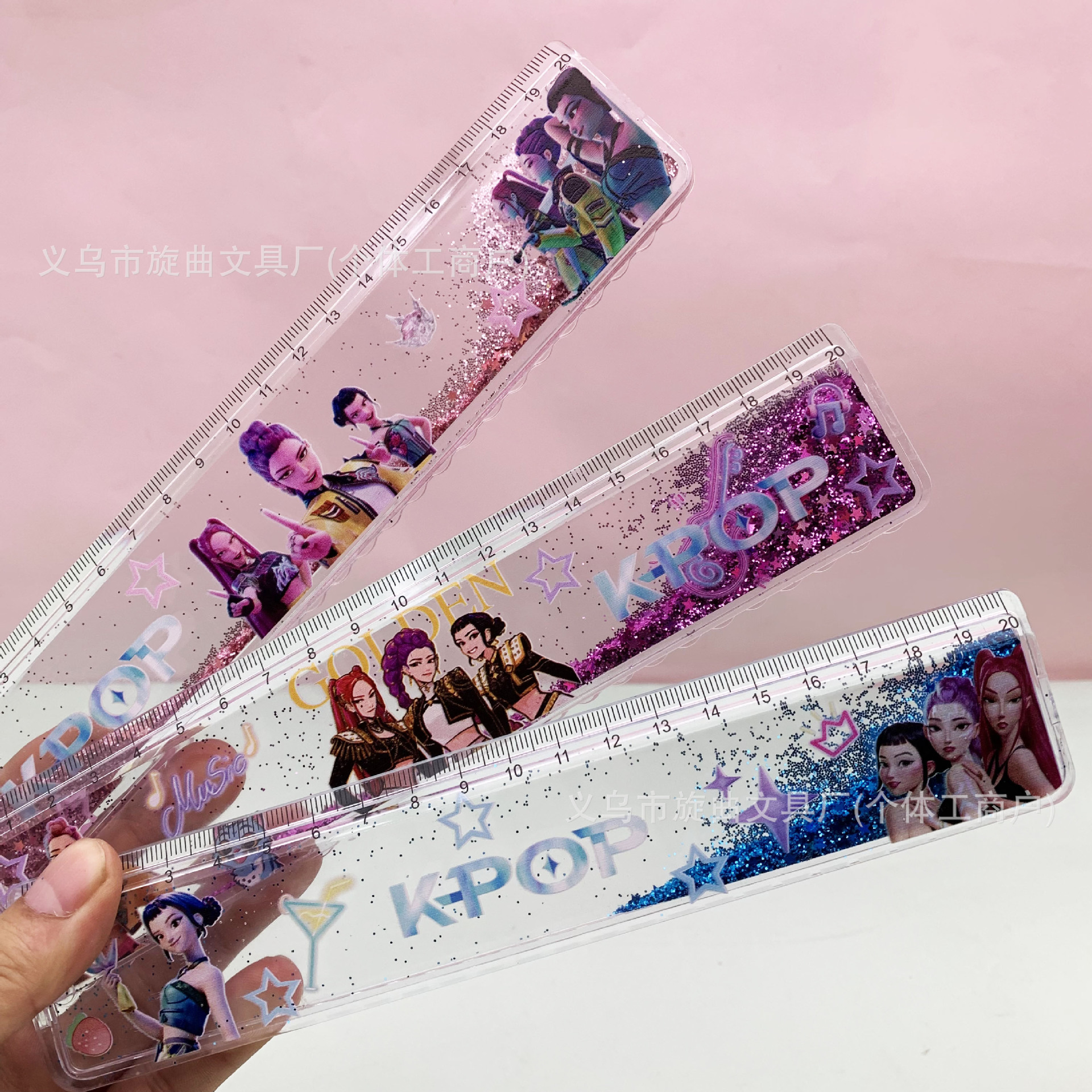 跨境爆款猎魔女团20CM入油流沙尺学生专用透明直尺多功能绘图尺子