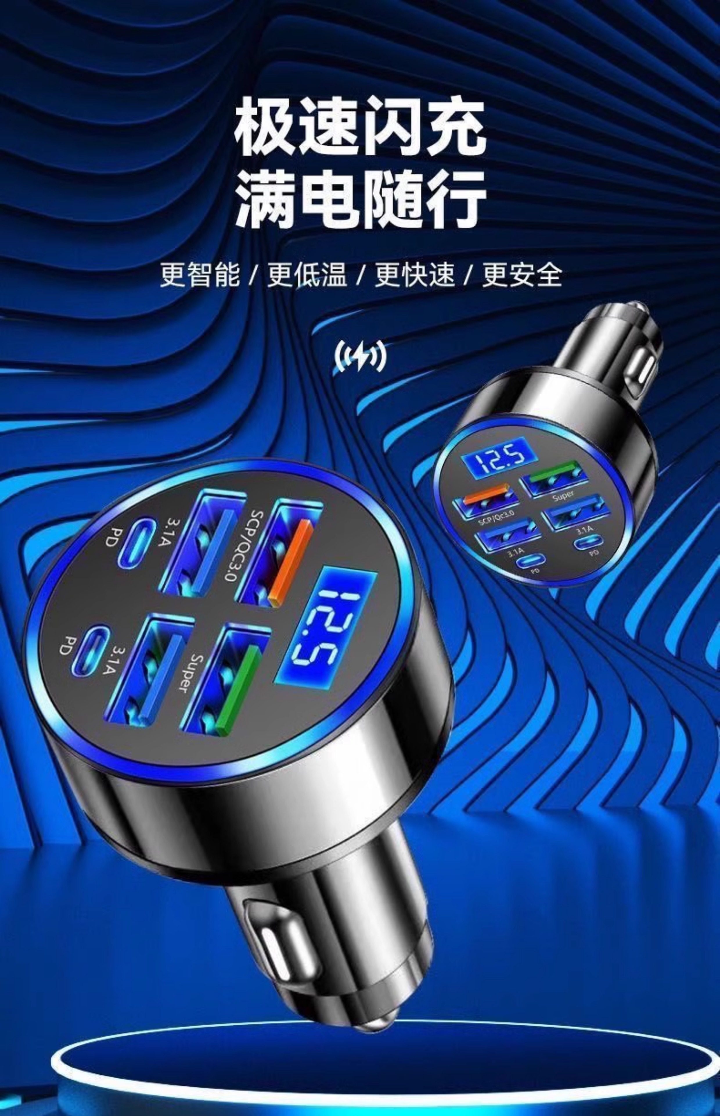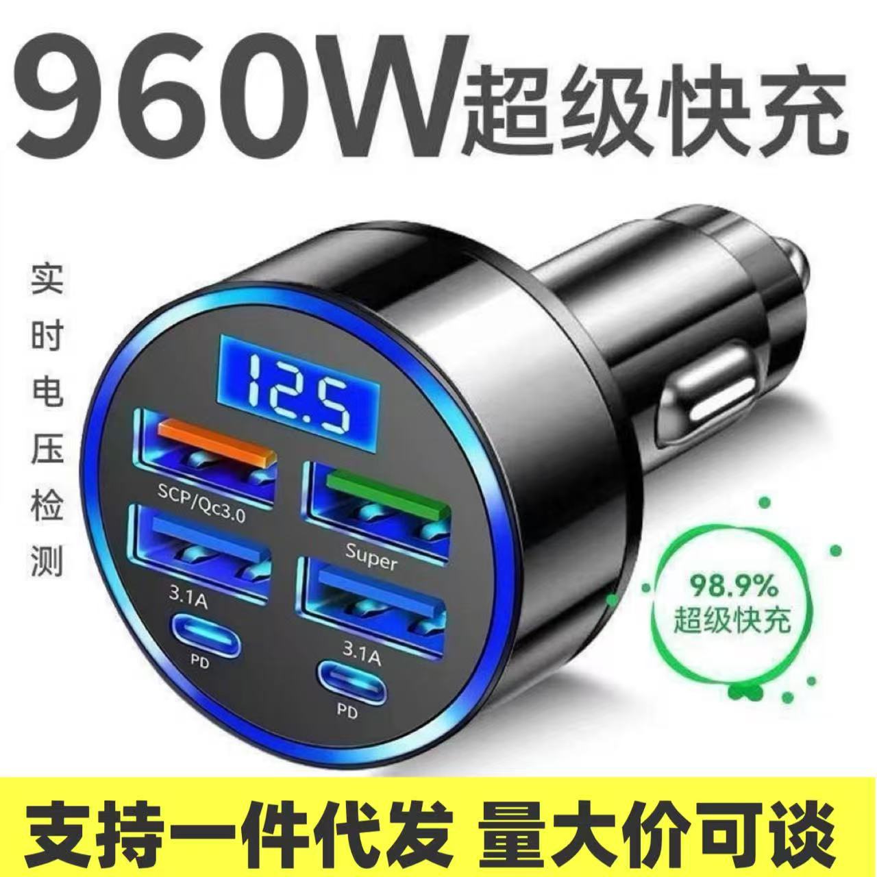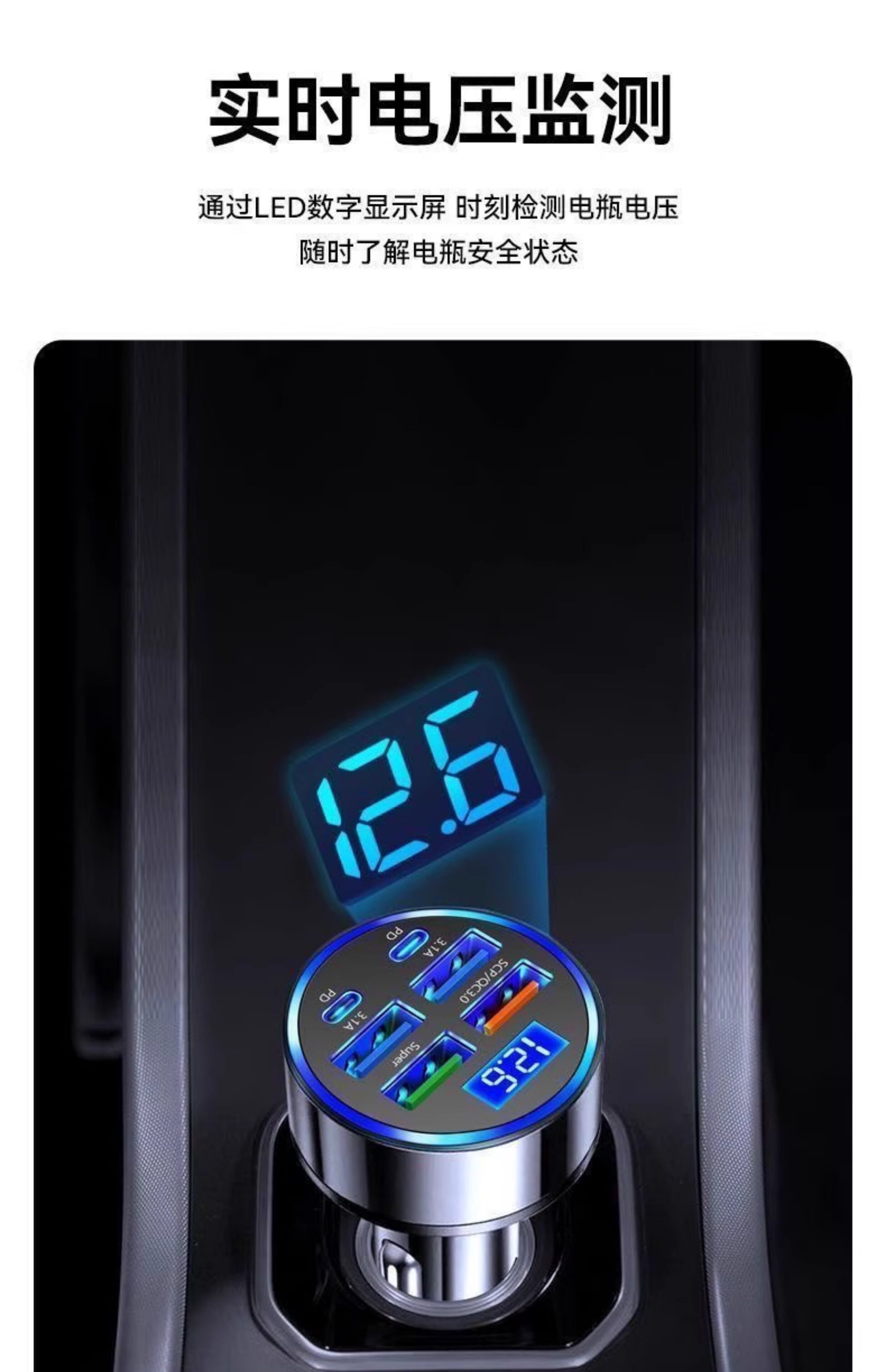 超级快充车载电压显示六口充电器汽车点烟器车充usb手机快充插头