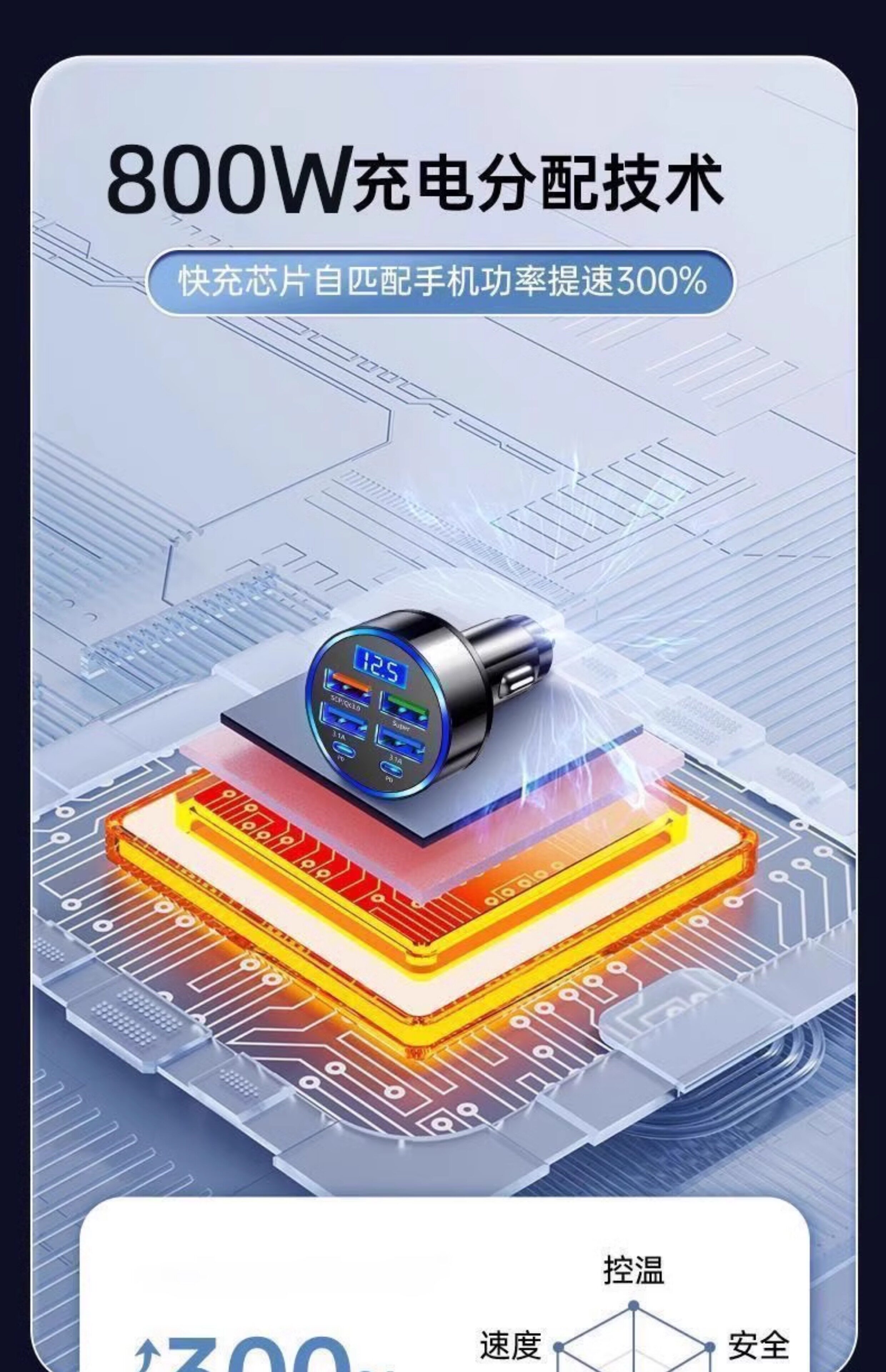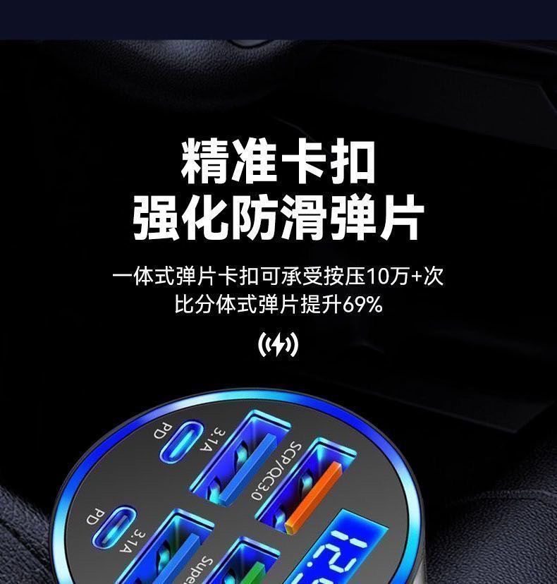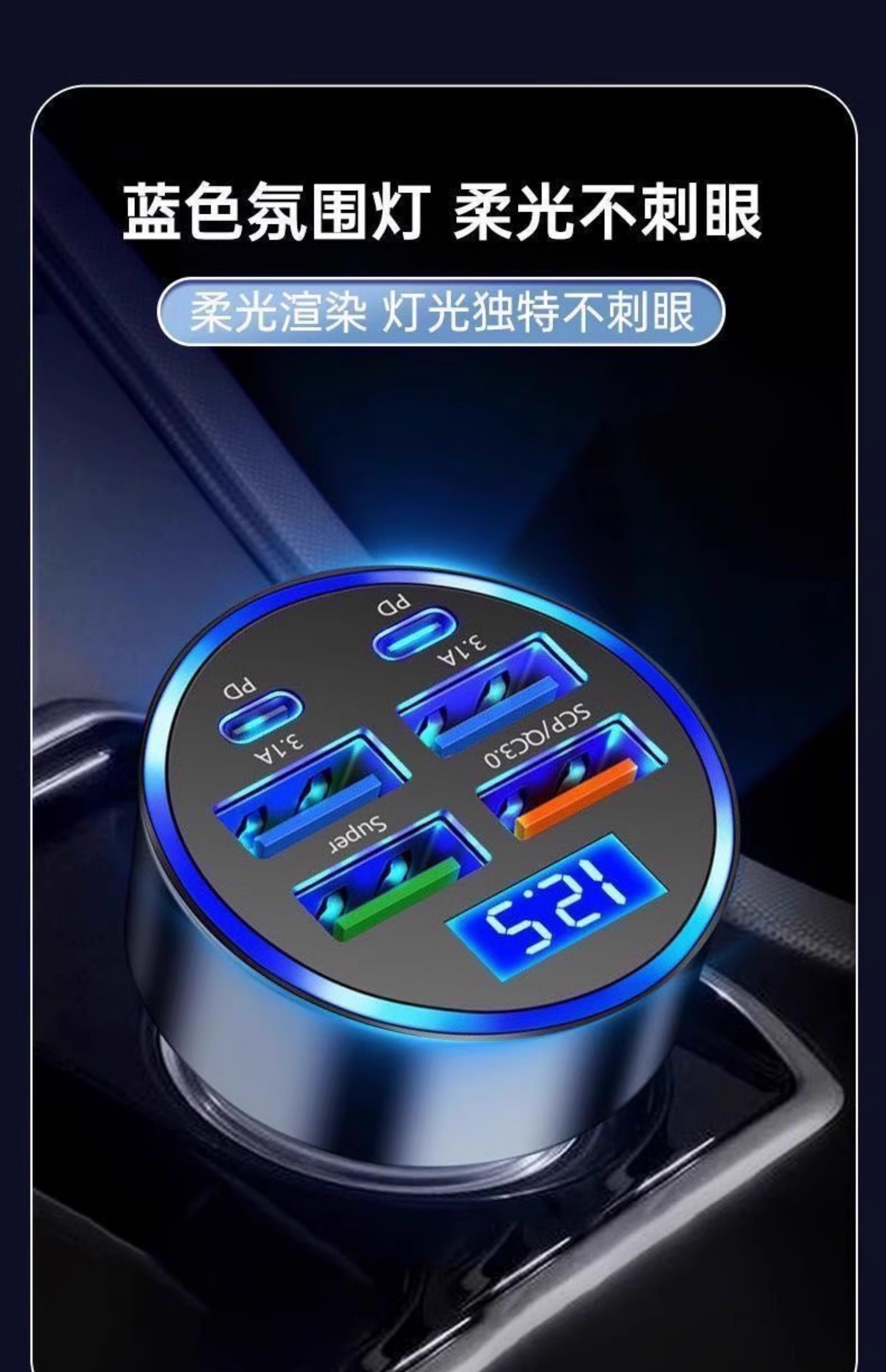 超级快充车载电压显示六口充电器汽车点烟器车充usb手机快充插头