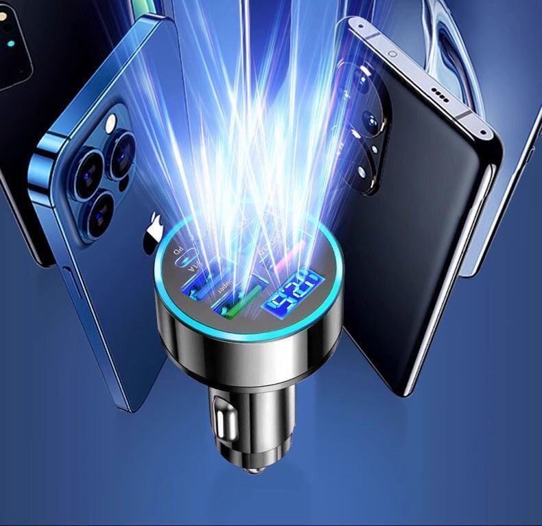 デジタルディスプレイ急速充電PD+QC3.0カーチャージャー金属製多機能66W車載充電器直販急速充電