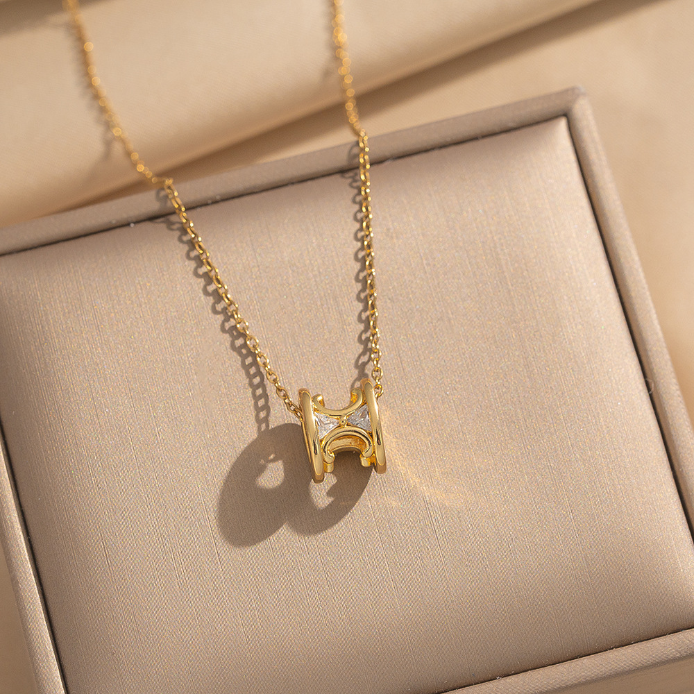 跨境热卖微镶小蛮腰吊坠钛钢项链女轻奢小众设计感锁骨链现货批发