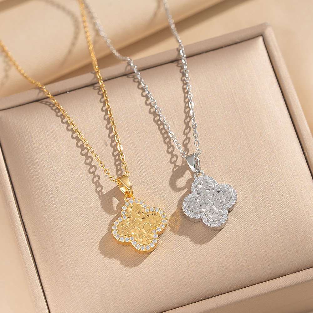 跨境钛钢幸运四叶草项链女简约轻奢吊坠小众设计小清新锁骨链女