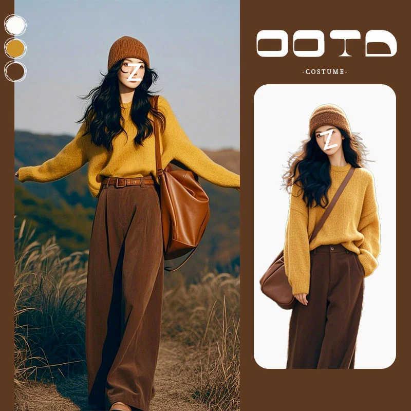 韩系休闲风时尚潮流套装女2025年秋冬新款慵懒简约上衣裤子两件套