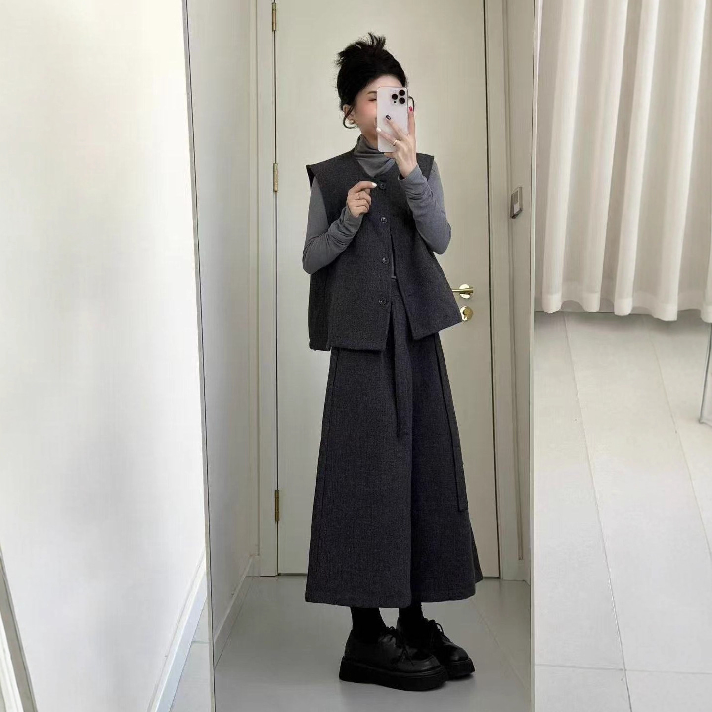 高级感时尚套装女2025秋冬季新款休闲气质马甲打底衫阔腿裤三件套
