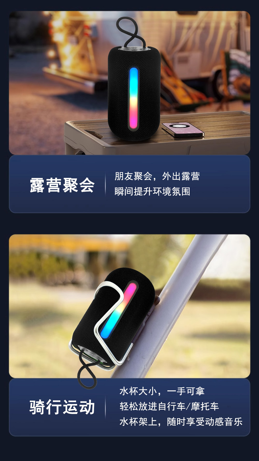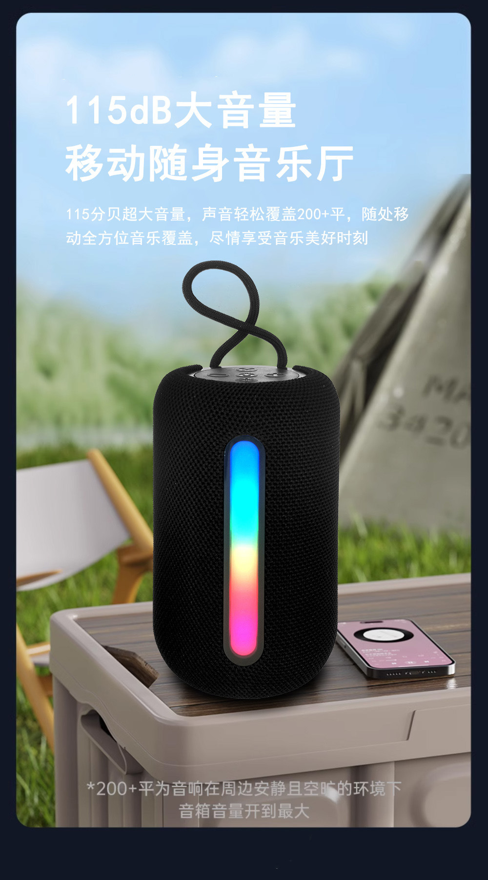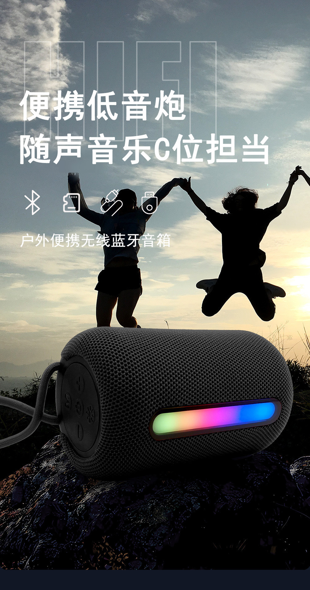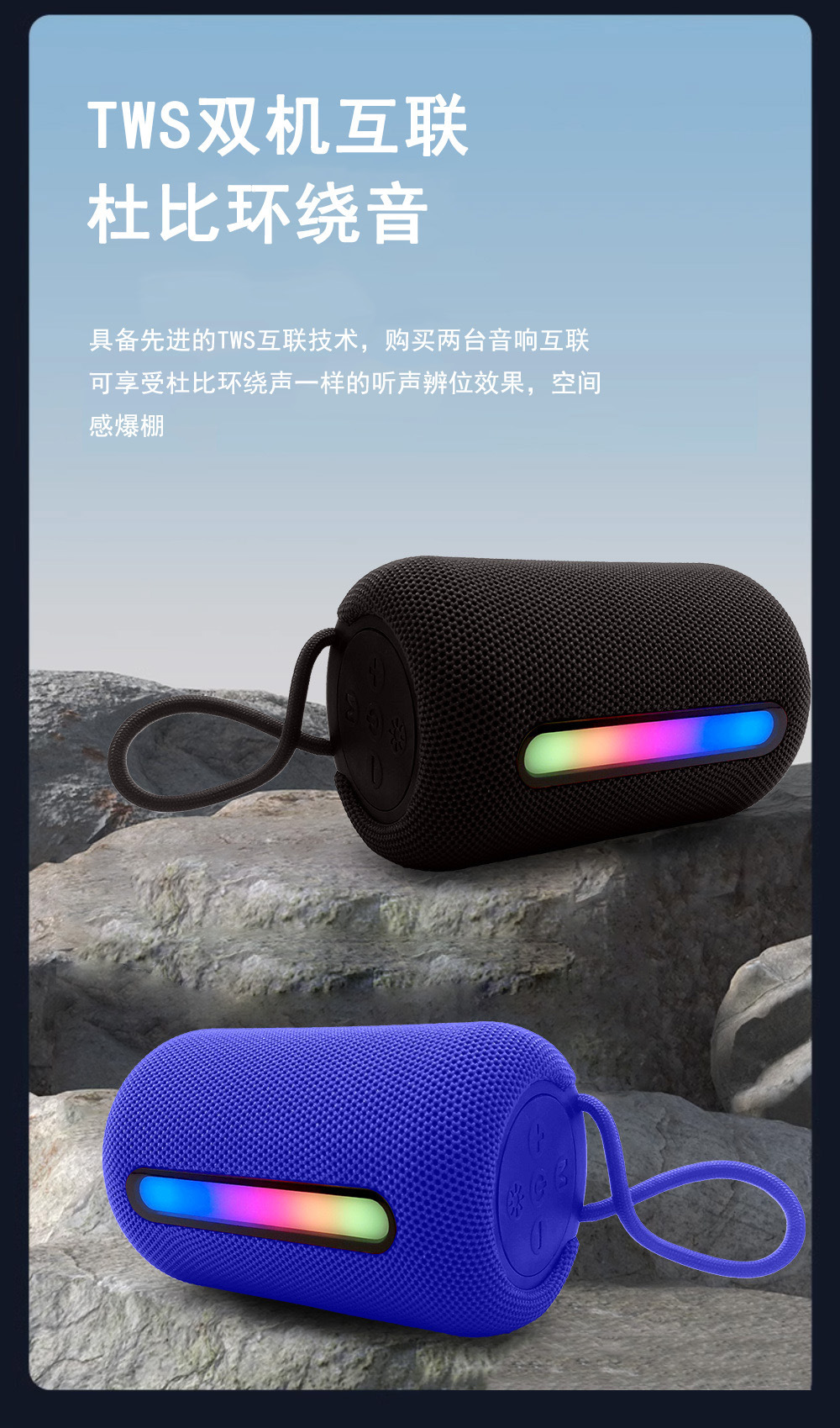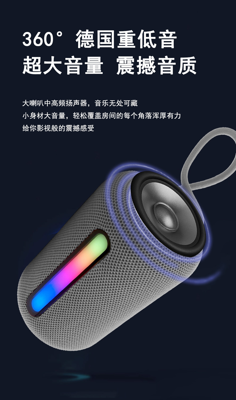 新款无线蓝牙音箱户外便携式超重低音炮带RGB灯小音响蓝色红批发