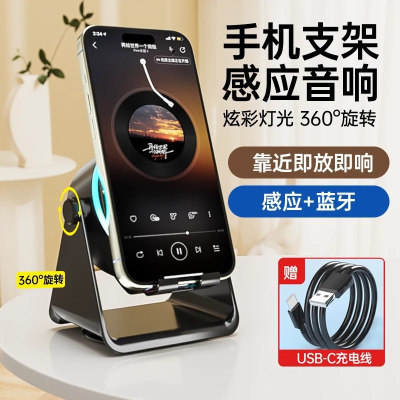 跨境爆品无线感应支架手机支架音响桌面四合一懒人直播音箱批发MS